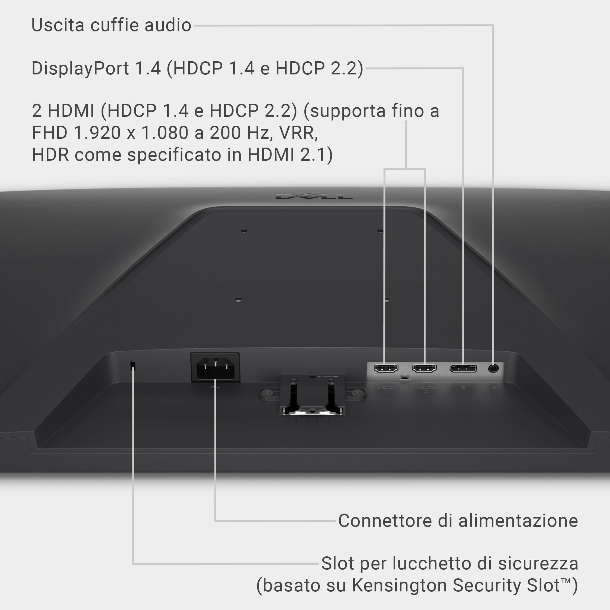 Dell 27 Monitor Gaming - SE2725HG, Full HD (1920x1080), 200Hz, Fast IPS, 1ms, AMD FreeSync Premium, 99% sRGB, VESA (100x100mm), DisplayPort, 2 HDMI, 3 Anni di Garanzia, Nero