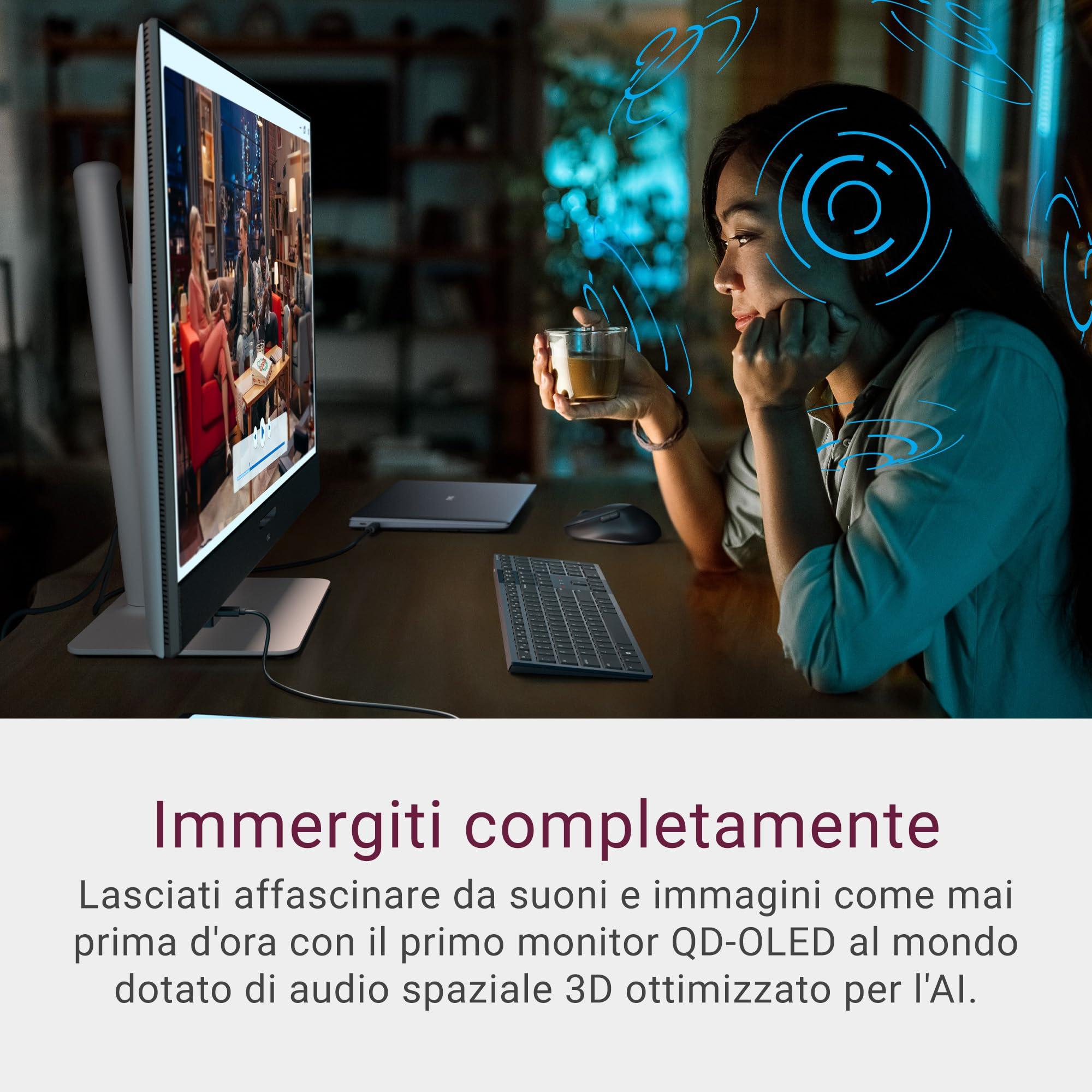 Dell 32 Plus Monitor - S3225QC, 4K UHD (3840x2160), 120Hz, QD OLED, 0.03ms, AMD FreeSync Premium Pro, HDR True Black 400, Dolby Vision, Altoparlanti integrati, 3 USB-C, HDMI, 3 Anni di Garanzia