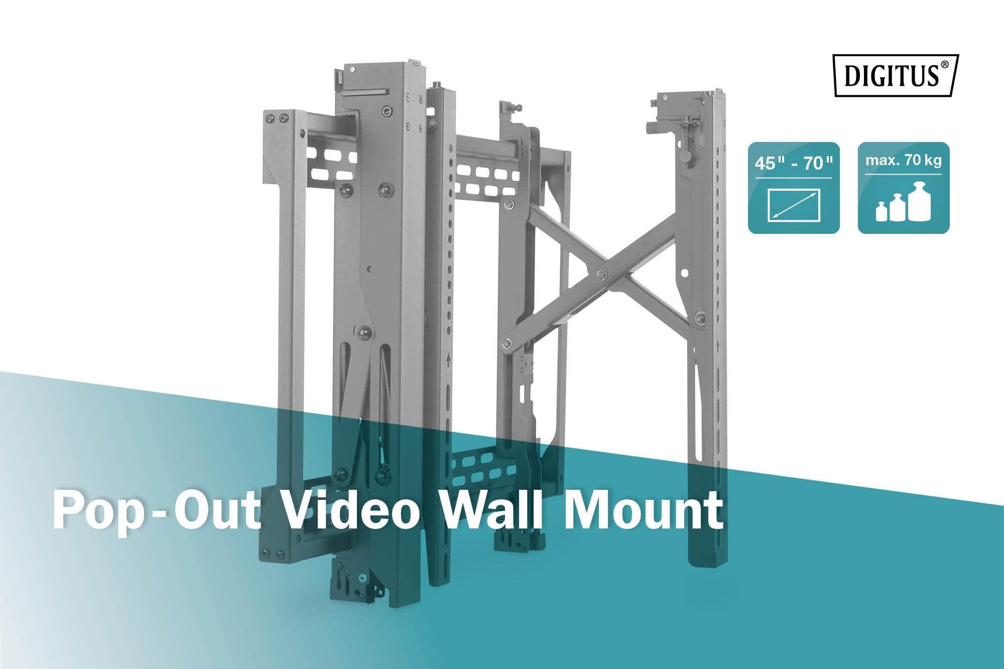 DIGITUS Supporto a parete per TV - per TV o monitor da 45-70" - funzione pop-out - carico massimo 70 kg - VESA da 200x200 a 600x400 - protezione antifurto - regolazione fine - nero