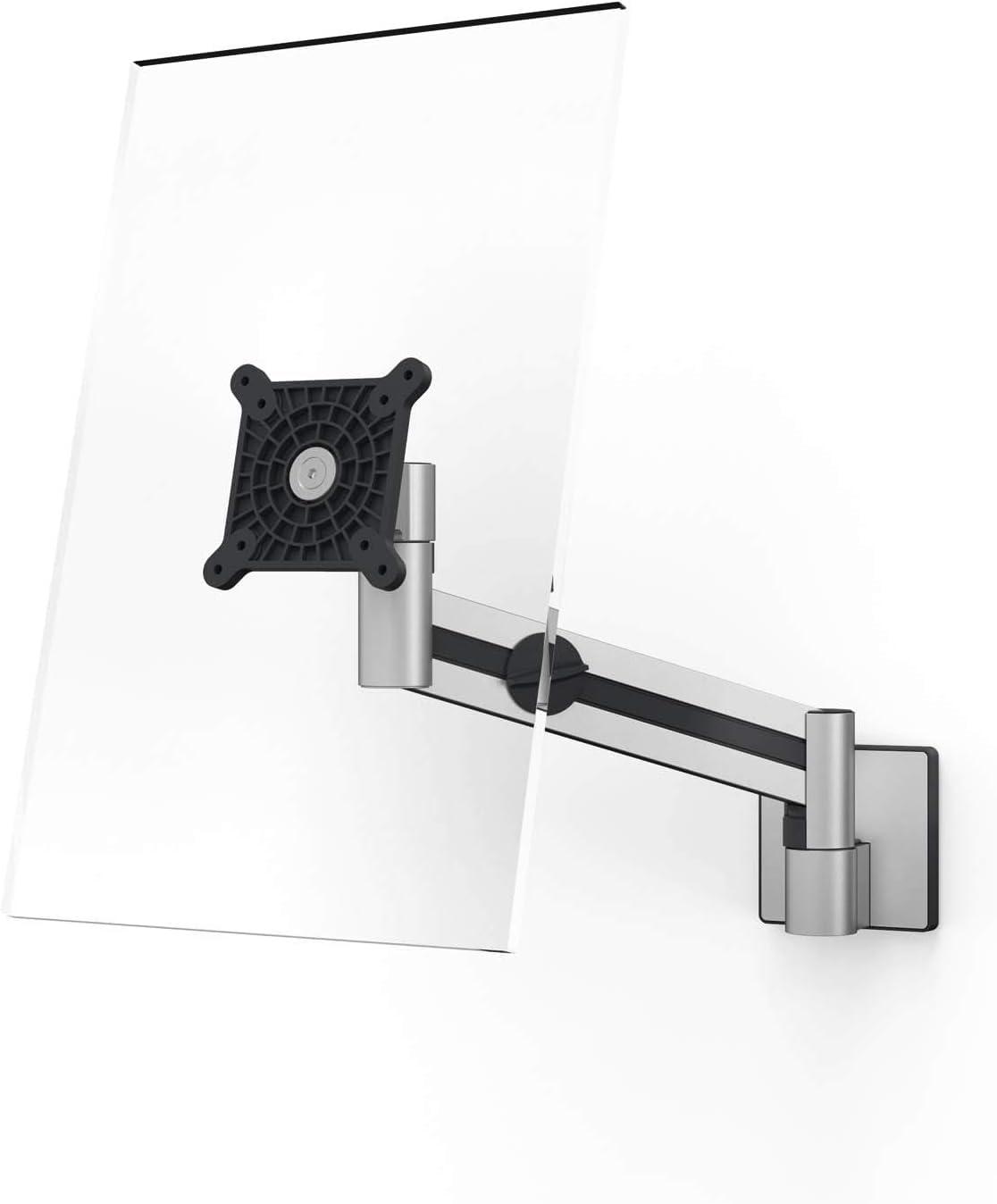 Durable 509023 Braccio Porta Monitor Pro da Parete, Braccio Estensibile per Schermo da 21-27” con Attacco Vesa, Ruotabile di 360°, Argento