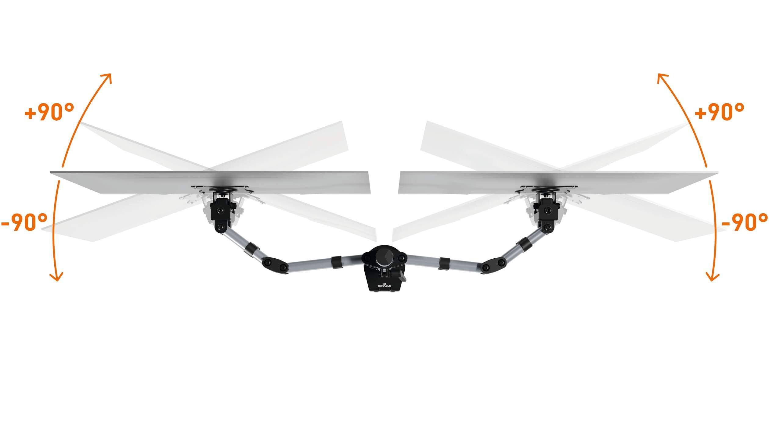 Durable Braccio porta monitor Select per 2 monitor, ruotabile di 360°, inclinabile, regolabile in altezza, per schermi con attacco VESA fino a 27" e 8 kg, argento, 509523