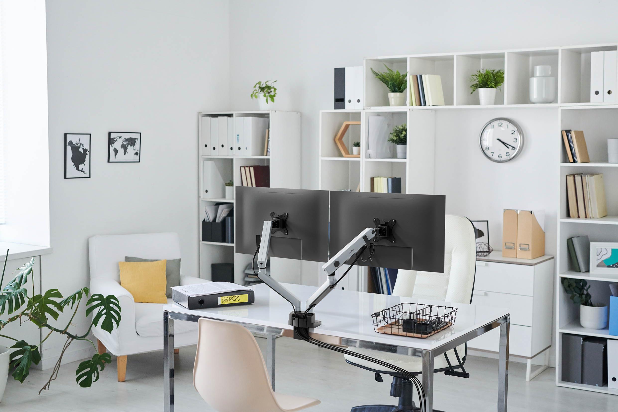 Durable Braccio porta monitor Select Plus per 2 monitor, ruotabile di 90°, inclinabile, regolabile in altezza, per schermi con attacco VESA fino a 32" e 8 kg, argento, 509723
