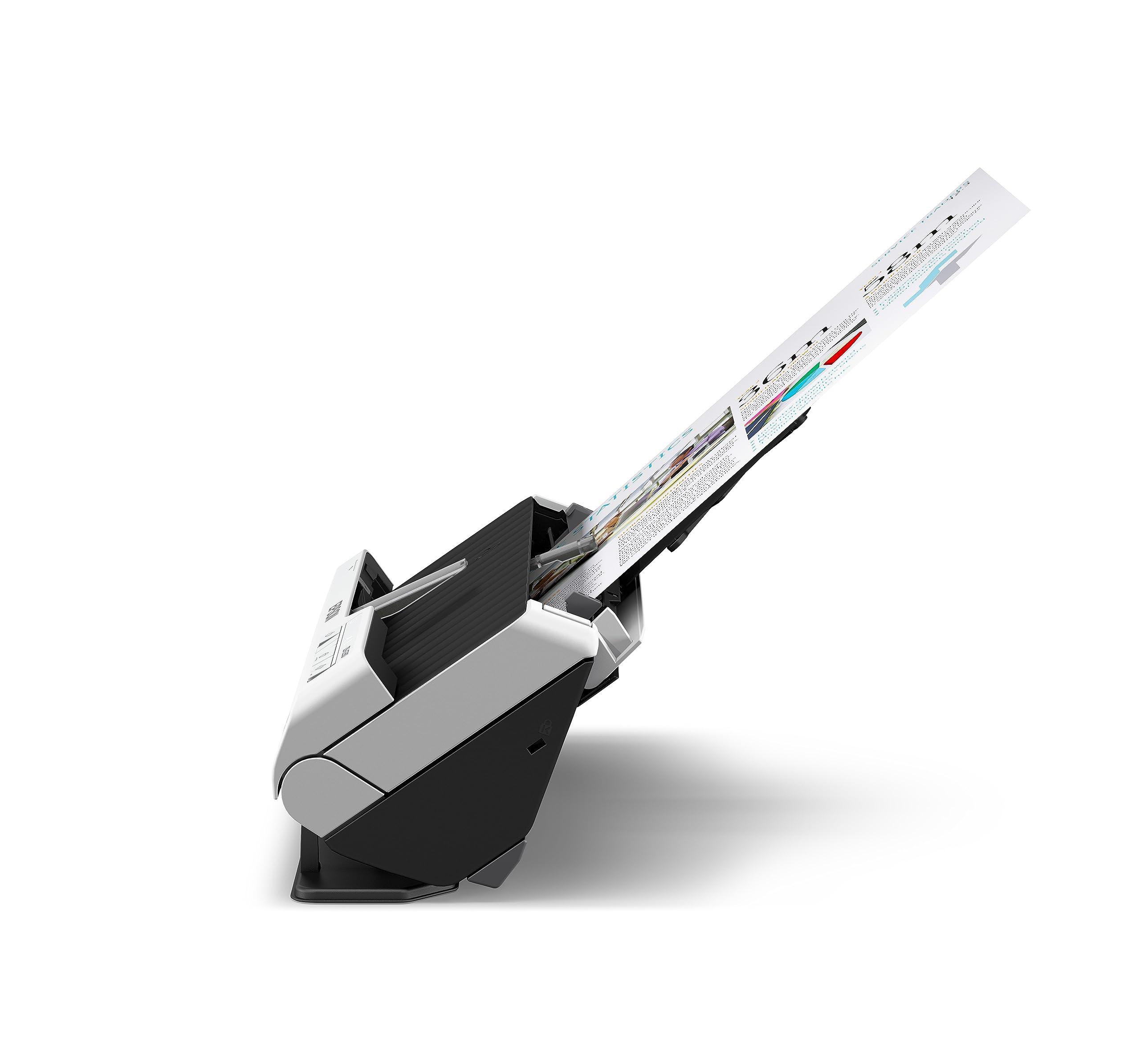 - Cura dei dettagli: Il percorso carta a U dello scanner consente di effettuare scansioni senza aggiungere ingombro al dispositivo. Passa alla modalità di percorso lineare per scansionare passaporti e opuscoli fino a 5 mm di spessore. La tecnologia di protezione della carta garantisce che i documenti originali rimangano intatti