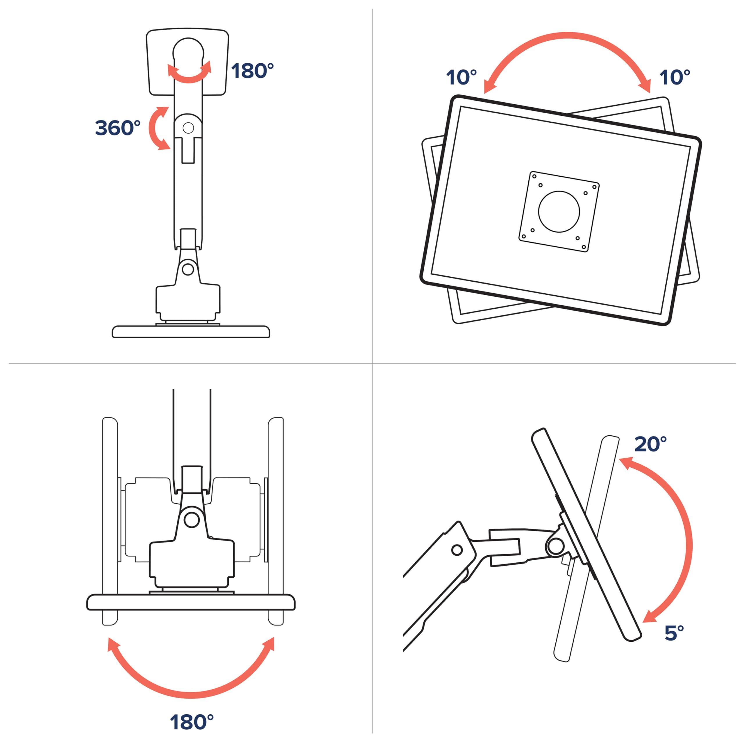 - Tutto ciò che serve: include braccio, snodo VHD, estensione, kit di montaggio, morsetto per superfici fino a 6,6 cm di spessore e kit di montaggio a foro passante