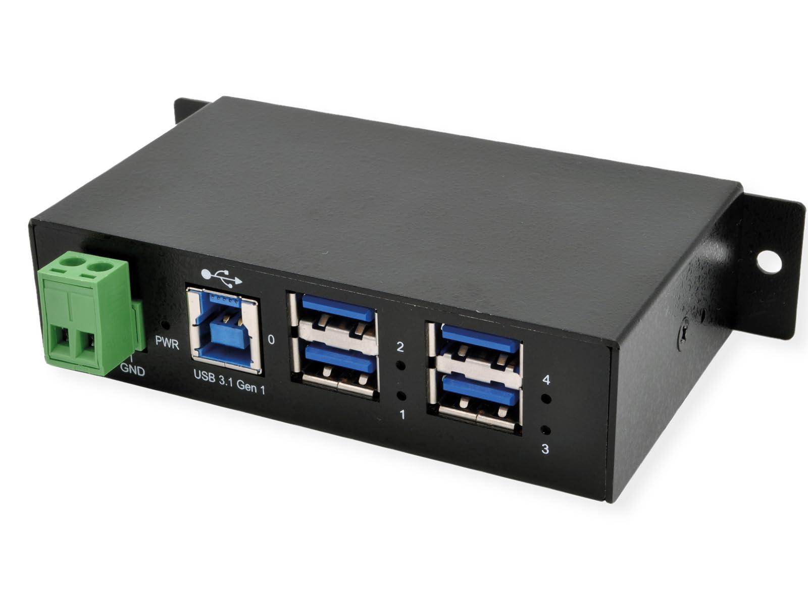 EXSYS EX-1504HMS - Hub in metallo a 4 porte USB 3.2 Gen1 con protezione da sovratensione EDS da 15 KV (Din-Rail)