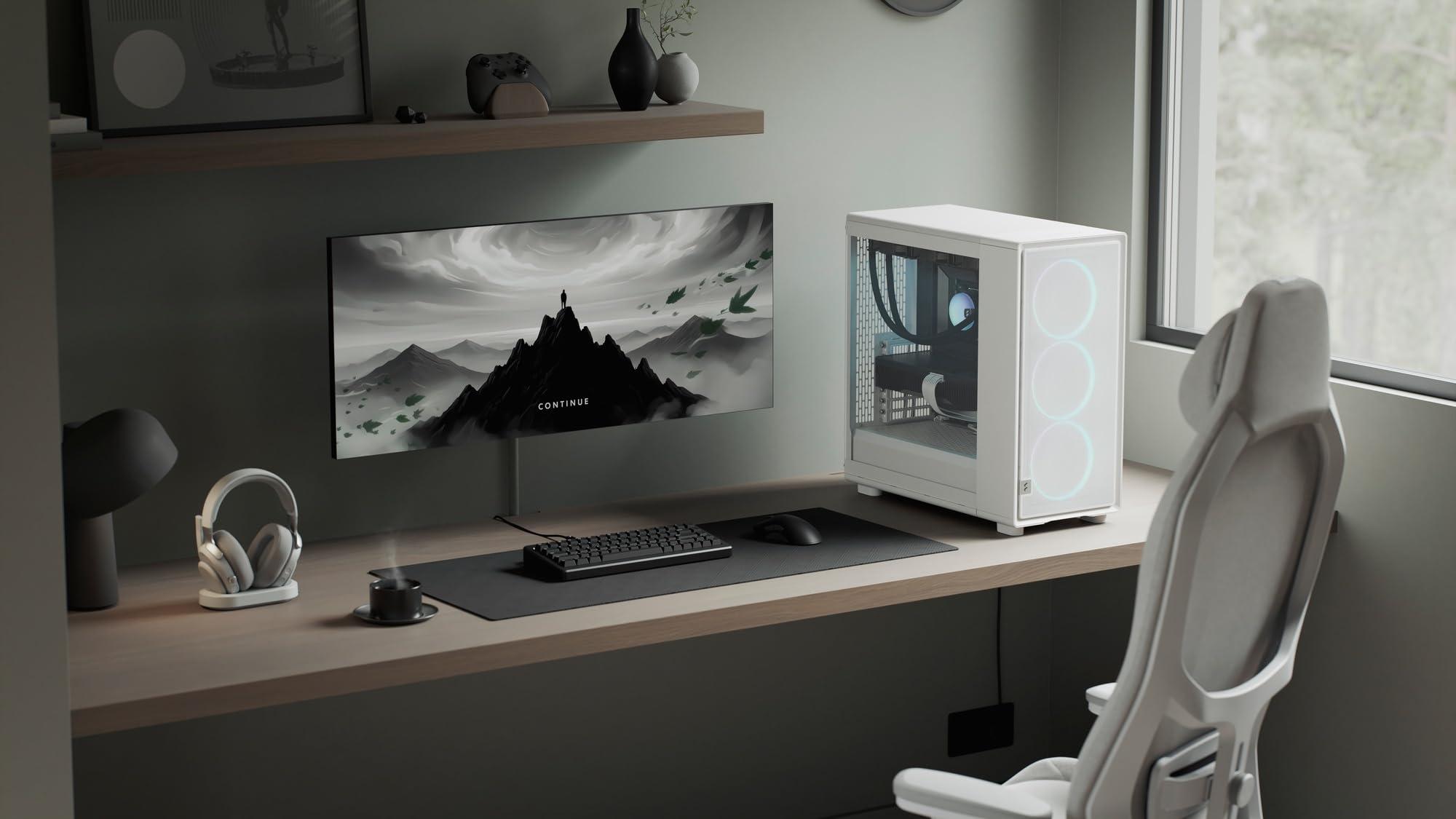 Fractal Design Epoch XL White RGB — Vetro temperato con tonalità chiara — Case PC gaming ad alto flusso — frontale in mesh — Momentum 14 RGB
