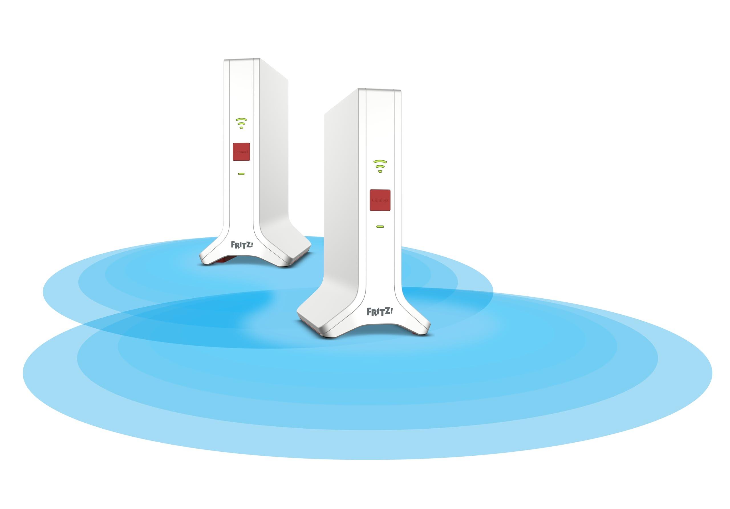 FRITZ! Mesh Wi-Fi Set 4200, Confezione da 2 FRITZ! Repeater 3000AX, Soluzione Mesh fino a 4 stanze, WiFi 6 Triband fino a 4.200 Mbps, 2 LAN Gigabit, interfaccia in Italiano
