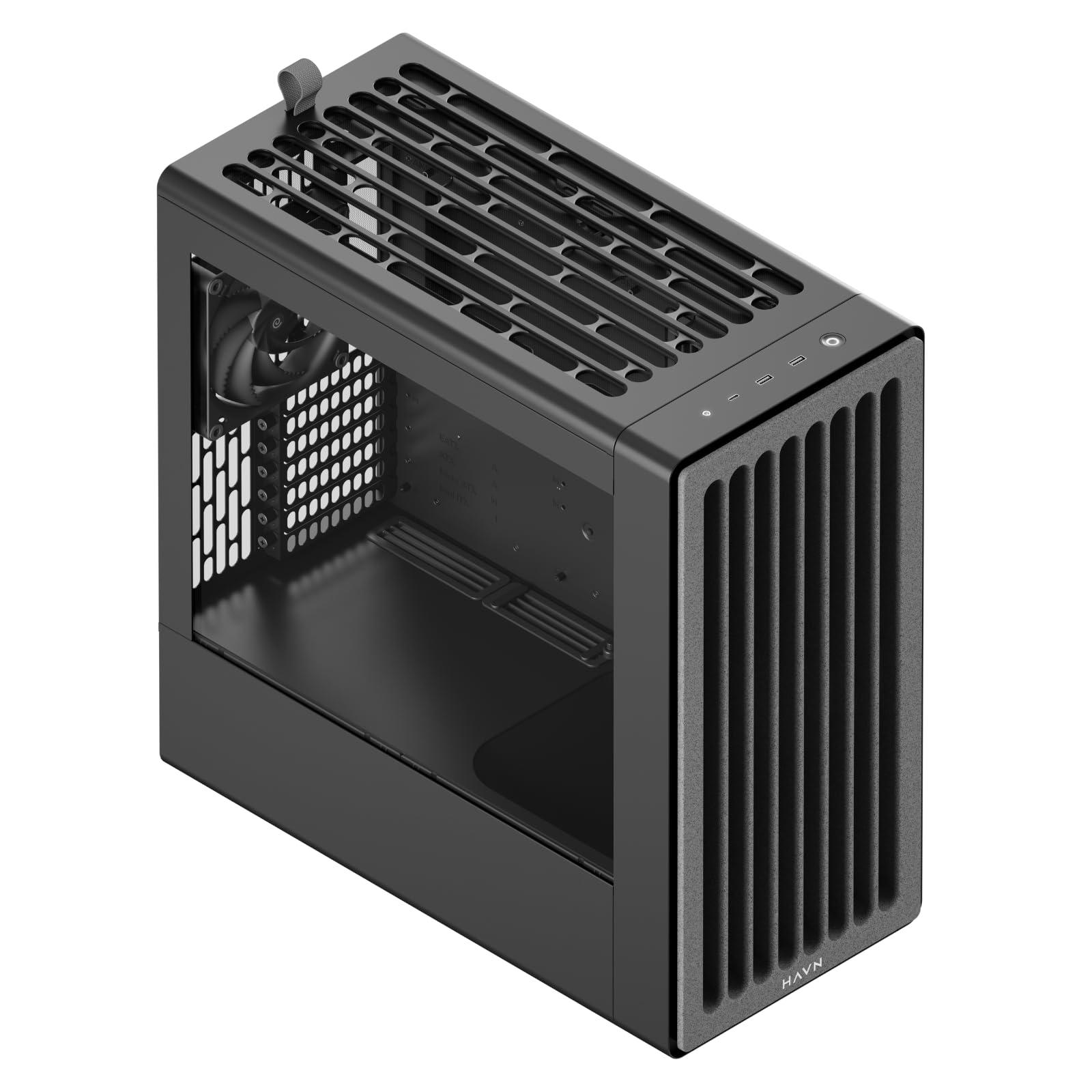 HAVN BF 360 Flow High Airflow ATX Mid Tower PC case, telaio in acciaio SGCC semi-aperto, gestione cavi SimpliCable, 2 ventole da 180 mm, 1 ventola da 140 mm con supporti per radiatore da 360 mm