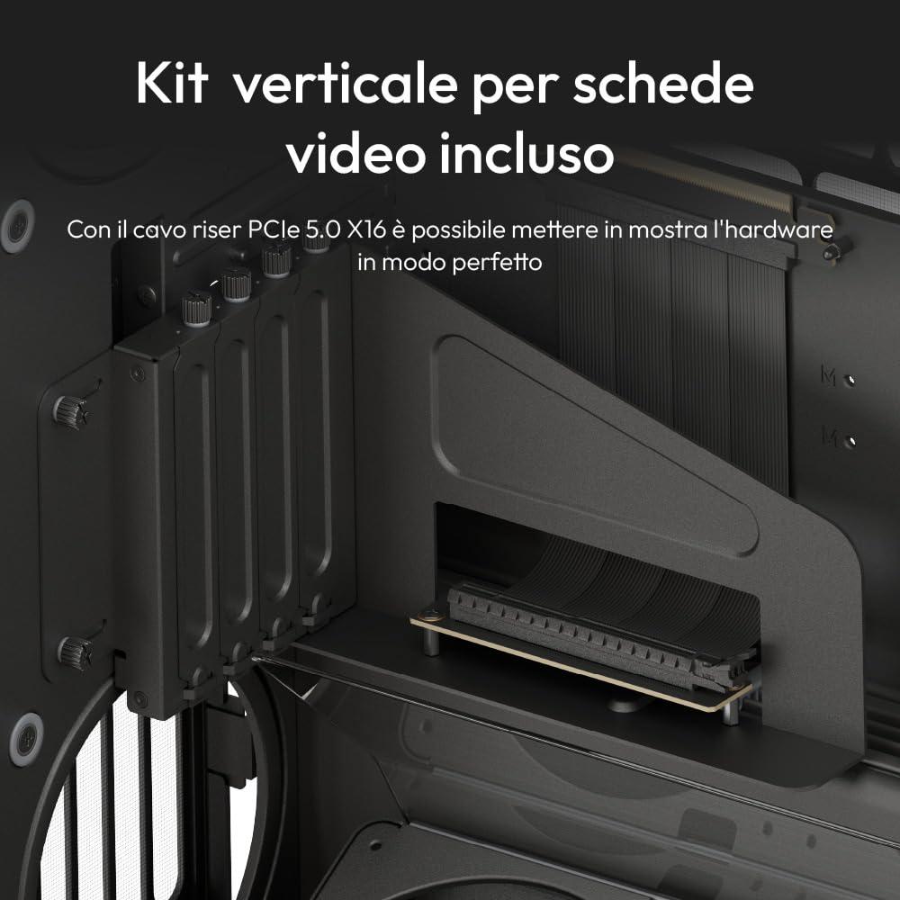 - Cavo riser rapido incluso: il kit di montaggio VGPU e il cavo riser PCI Express 5.0 X16 consentono di mostrare perfettamente il tuo hardware, senza compromettere le prestazioni.