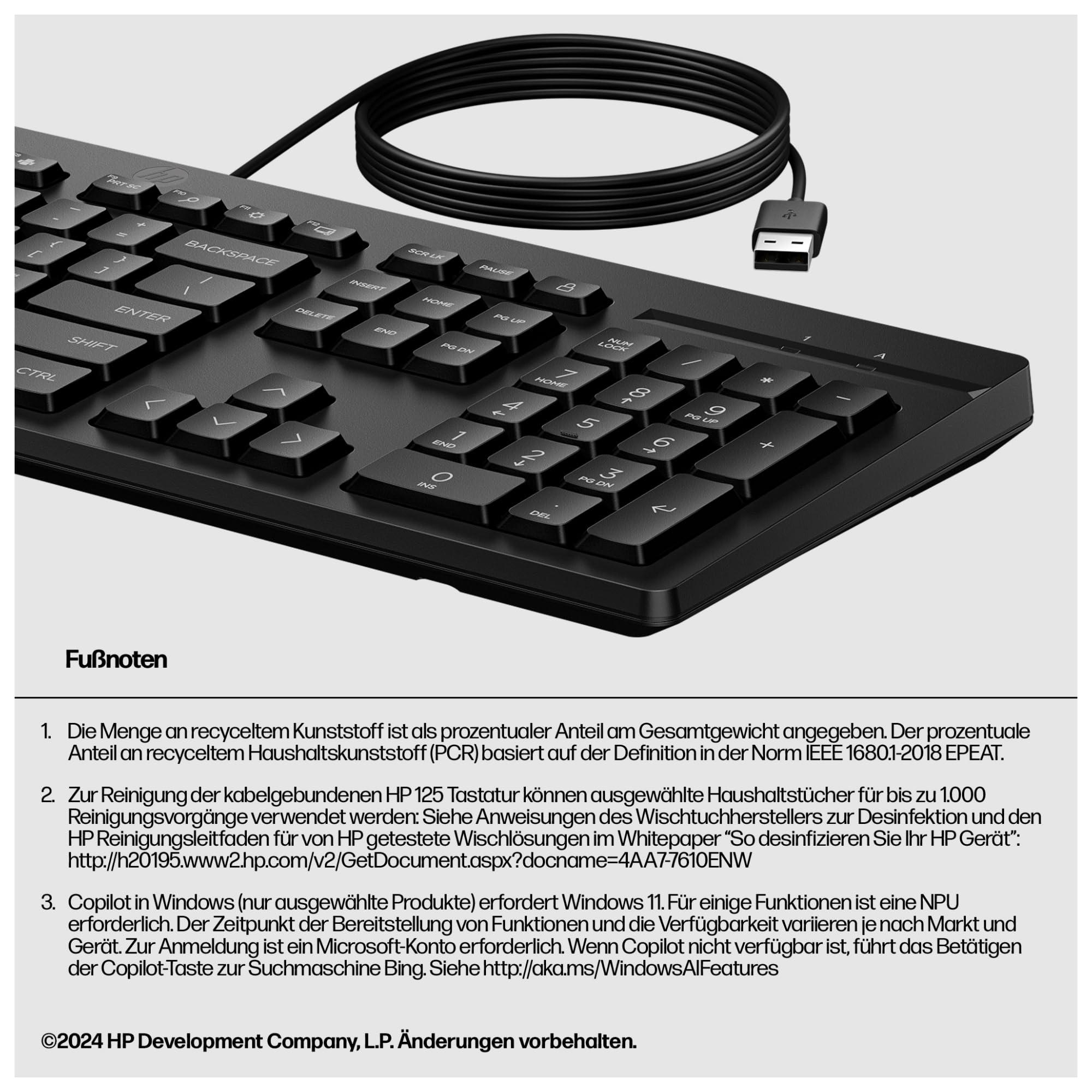 HP 125・Tastiera・100%・Full Size ・USB・QWERTZ・(AY2Y7AA) (EAN: 0198701843610)