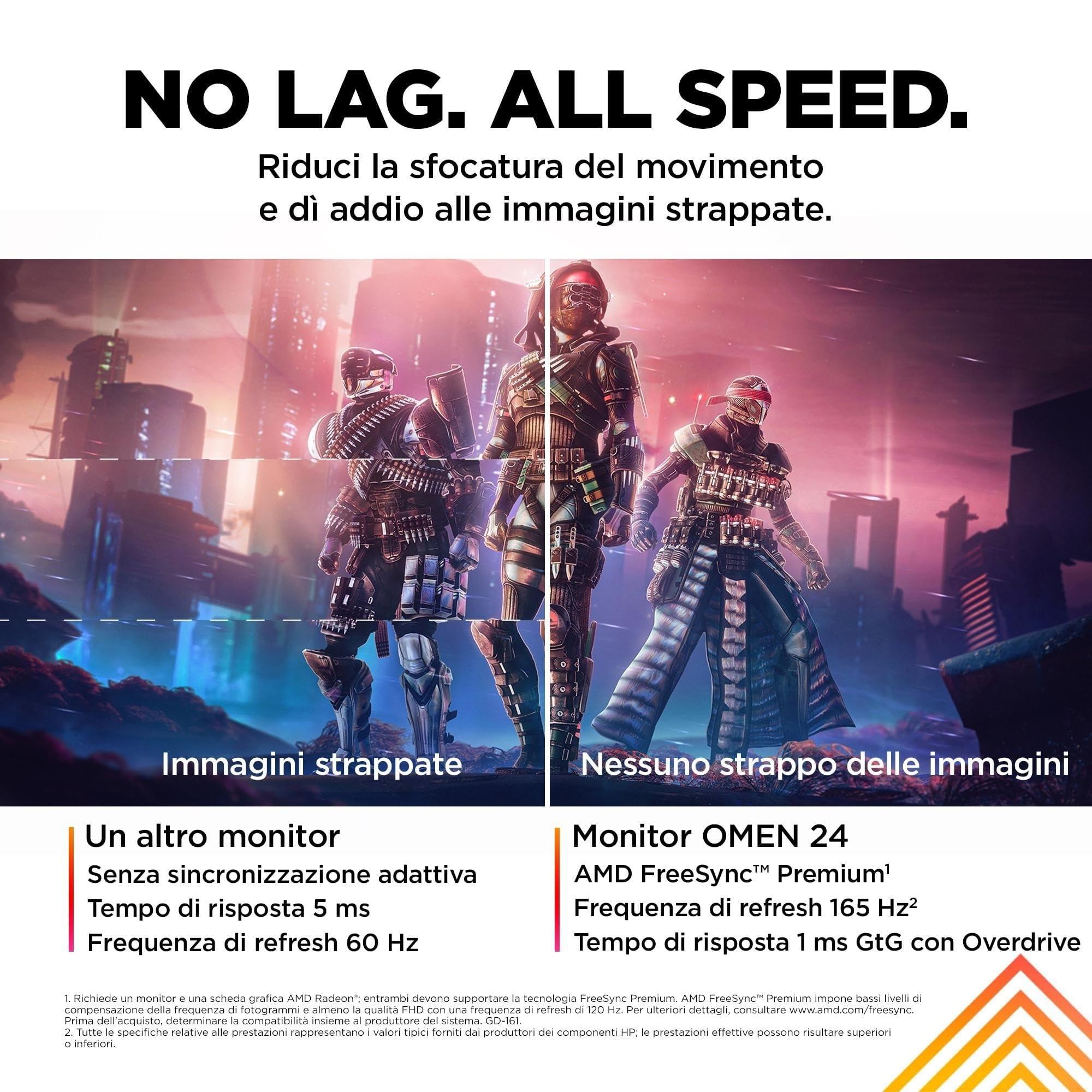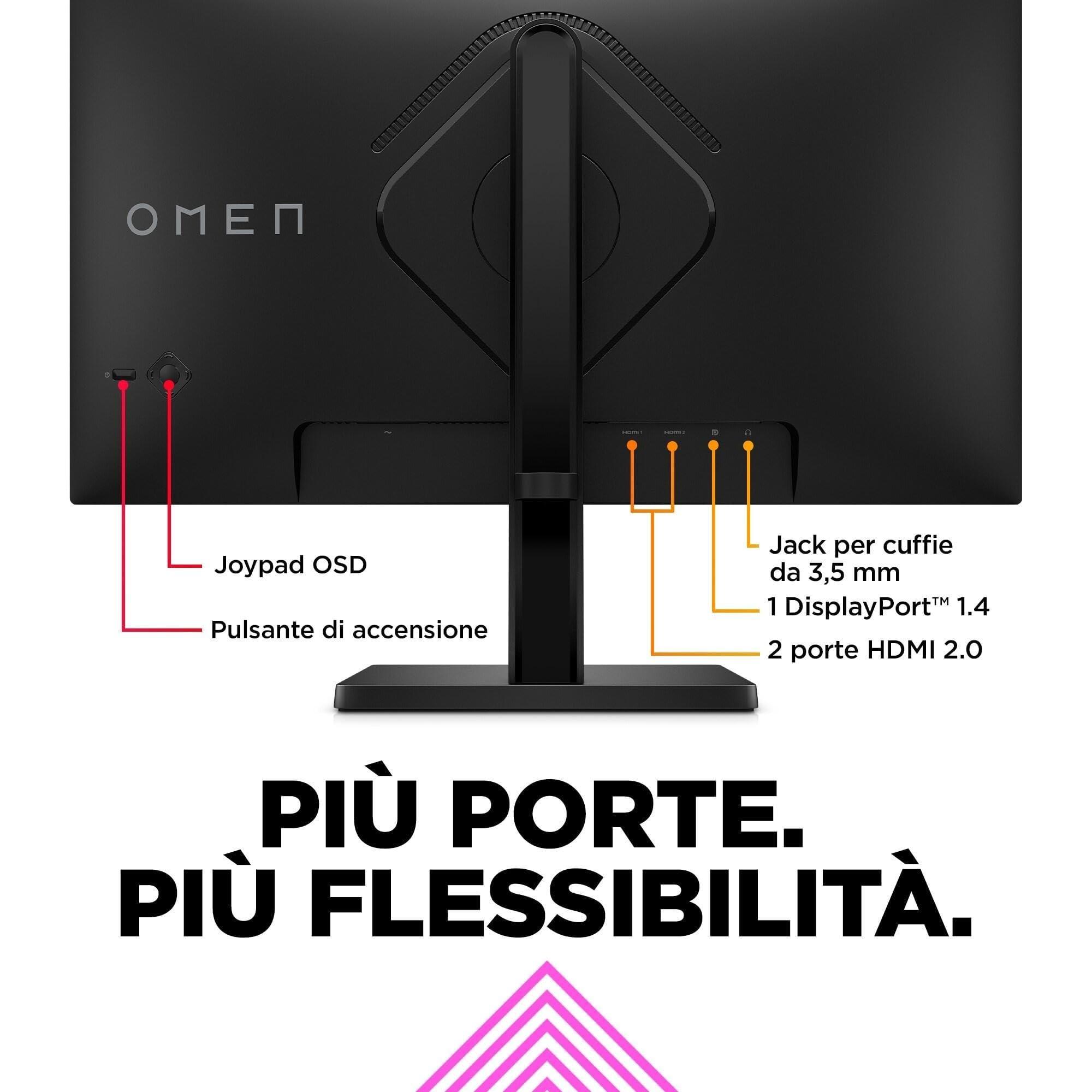 HP OMEN 24 FHD Monitor, Schermo da 24'' Full HD, Risoluzione 1920 x 1080 Pixel, Pannello IPS 16:9 da FHD – 165 Hz -1 ms, 1 ms, IPS - HDR 400-450 Nits, Antiriflesso, AMD FreeSync, USB, HDMI, Nero