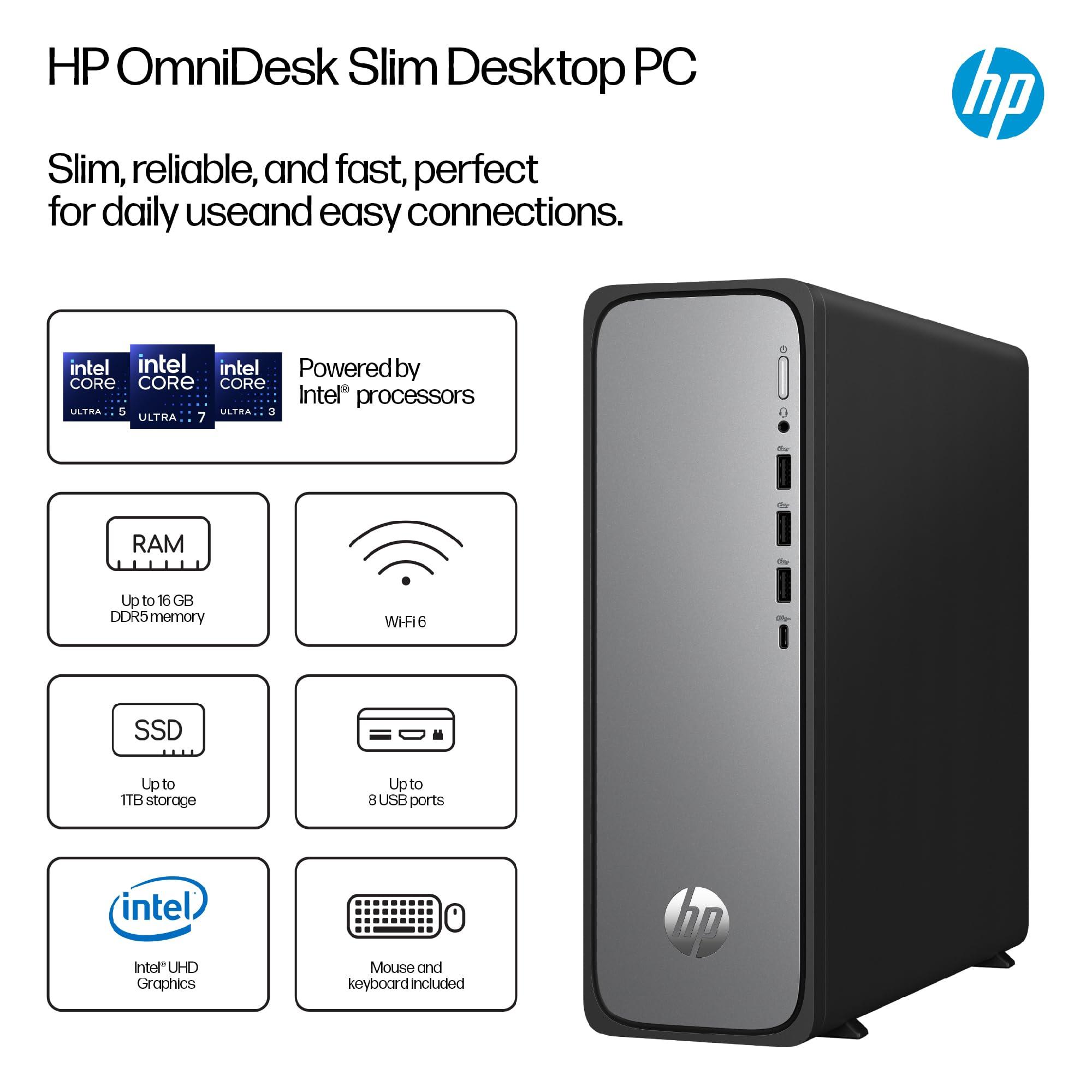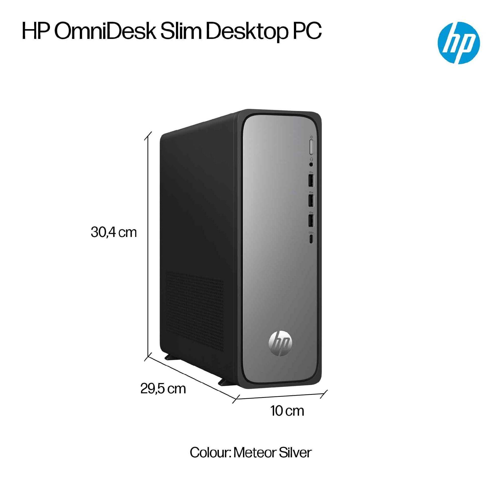 Il HP OmniDesk Slim S03-0009na è un PC tower versatile progettato per le attività di elaborazione quotidiane. Alimentato dal processore Intel Core i5-14400 10-Core con velocità da 2,5 GHz a 4,7 GHz con Turbo Boost, questo desktop offre prestazioni affidabili per lavoro, studio e intrattenimento. Il sistema è dotato di 8 GB di RAM DDR5 a 4800 MHz e un SSD da 512 GB per un multitasking reattivo e tempi di avvio rapidi. Il supporto grafico Intel UHD integrato visualizza una risoluzione fino a 8K tramite connessioni HDMI o DisplayPort. Con Microsoft Windows 11 Home, il PC viene fornito con abbonamenti di prova a Microsoft 365, McAfee Online Protection, Adobe e PC Game Pass. Le opzioni di connettività includono Bluetooth 5.4, Wi-Fi 6, Gigabit Ethernet e più porte USB (4x USB 2.0, 3x USB 3.2 Type-A, 1x USB 3.1 Type-C). La compatta torre d'argento misura 303,5 mm x 100 mm x 303,5 mm e pesa 3,8 kg. Costruito con il 60% di plastica riciclata post-consumo e il 20% di metallo riciclato, il sistema include una tastiera USB e un mouse USB HP 125. Dotato di una garanzia di 1 anno, questo PC desktop offre prestazioni affidabili per l'uso quotidiano.