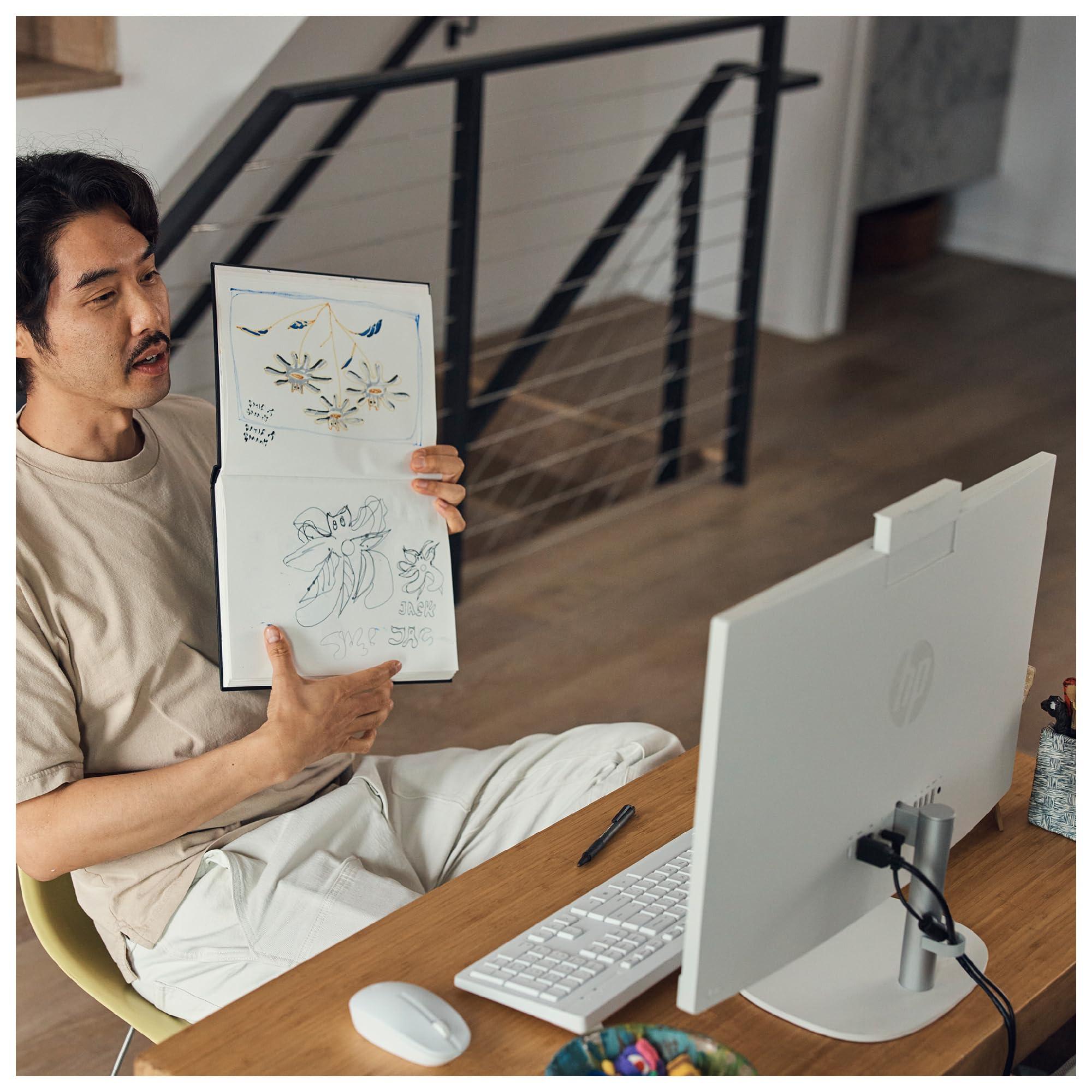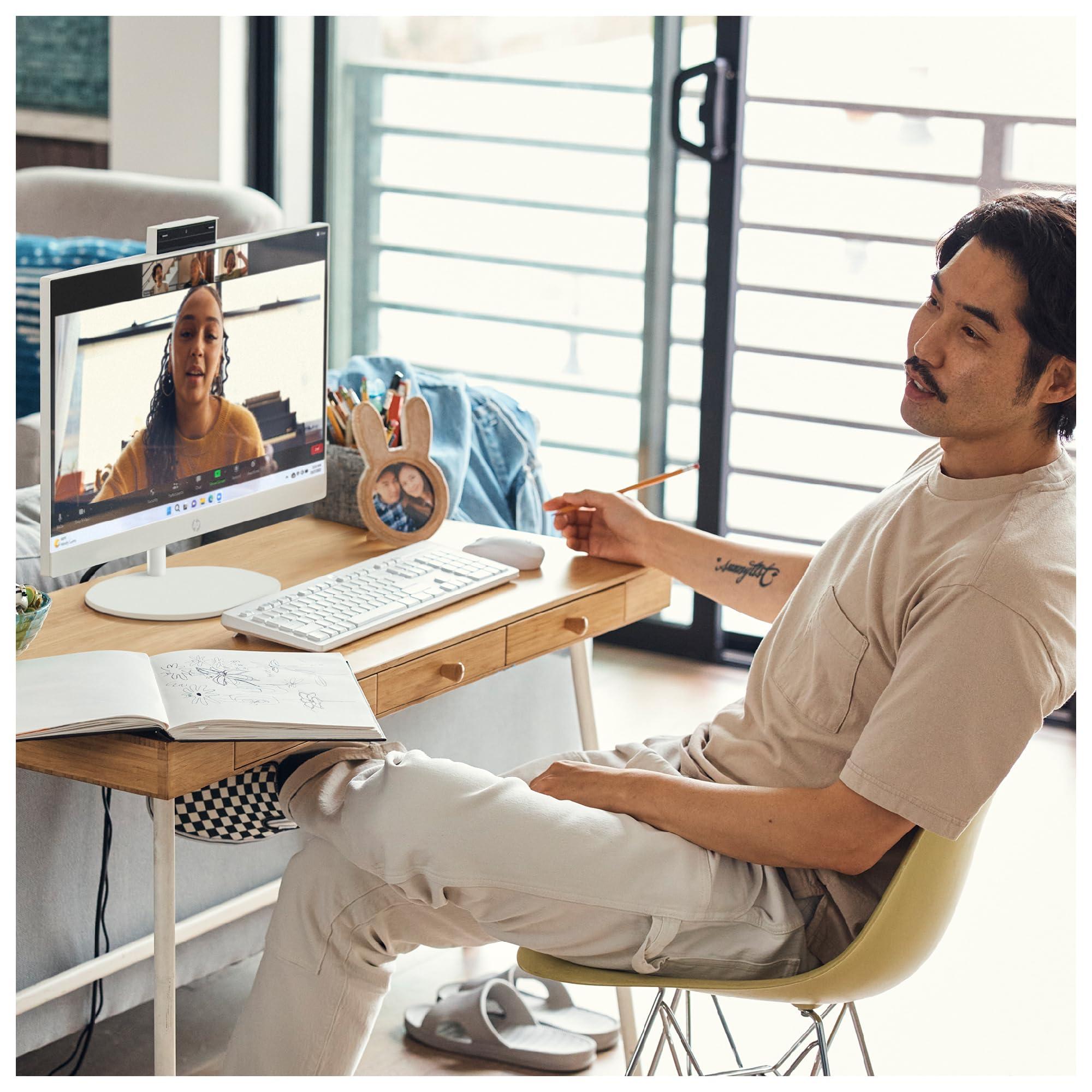 - Design salvaspazio: PC all-in-one compatto bianco che misura 540,5 mm x 186,2 mm x 409 mm e pesa 5,27 kg, con materiali sostenibili con il 40% di plastica riciclata post-consumo e 1 anno di garanzia
