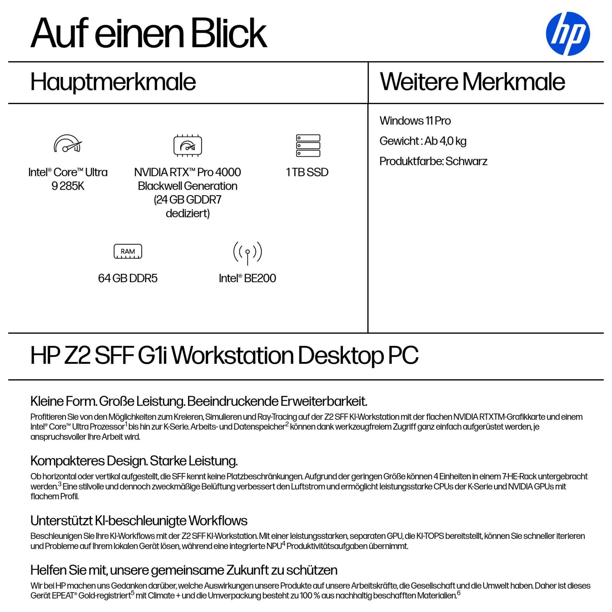 HP Z2 SFF G1i Workstation ? Core Ultra 9 285K ? 64GB RAM ? 1TB SSD ? RTX PRO 4000 Blackwell (D06GBET#ABD)