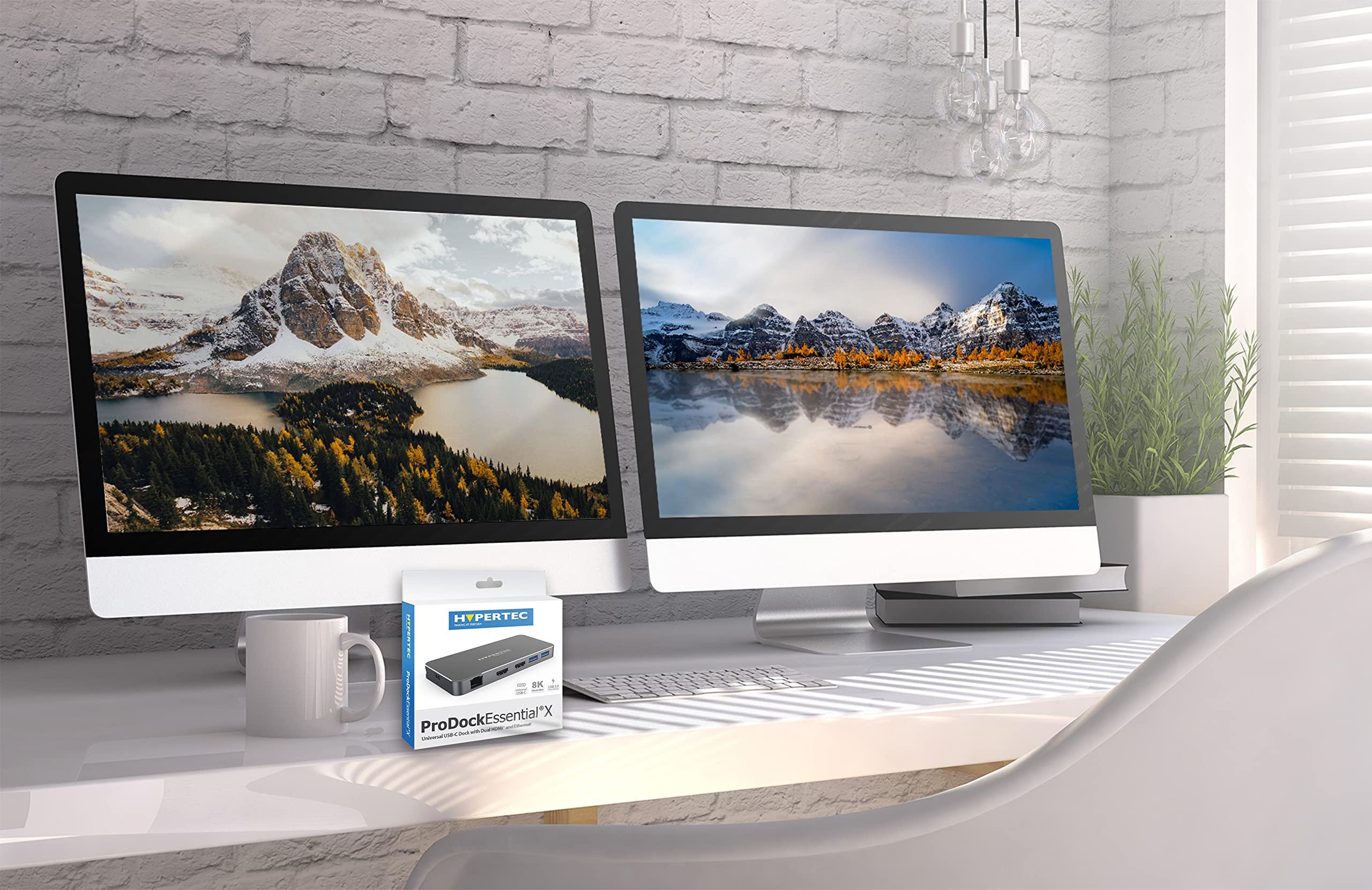 Hypertec ProDockEssential X1 Dock USB-C universale, doppio HDMI, display singolo 8K (solo Windows) / 4k Dual Display, 2 x USB-A 3.0, 1 x USB-C, Gigabit Ethernet, 100W Power Delivery