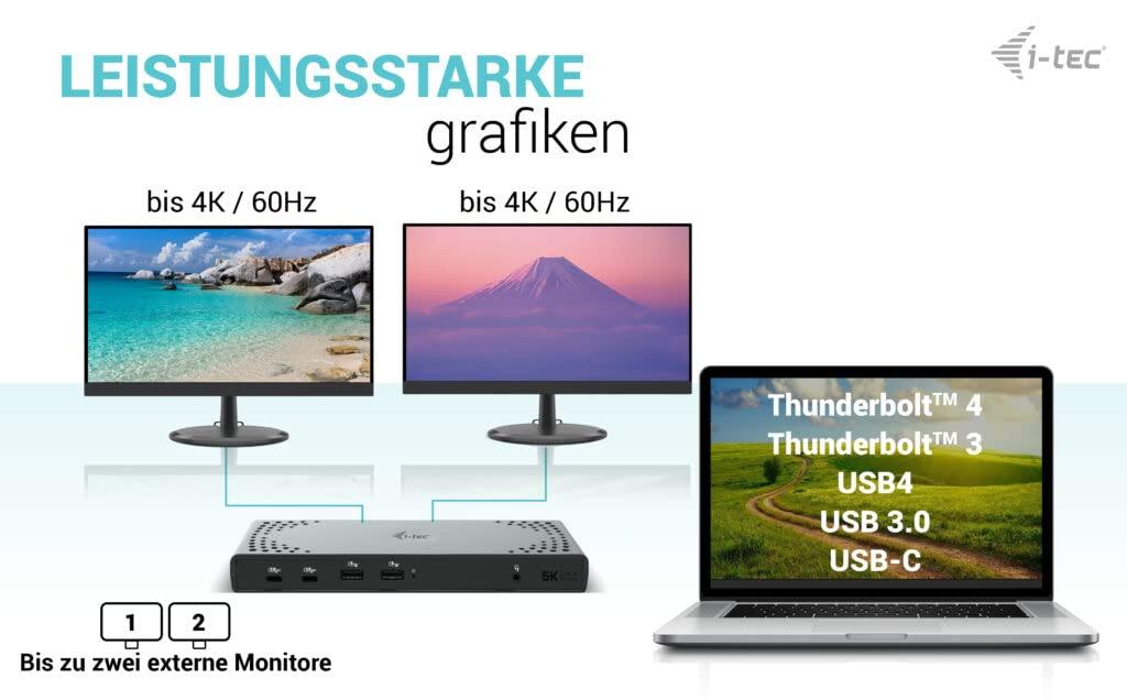 I-Tec Docking Stations USB-A/-C TB Dual Dock Dual Display Dock PD 100W