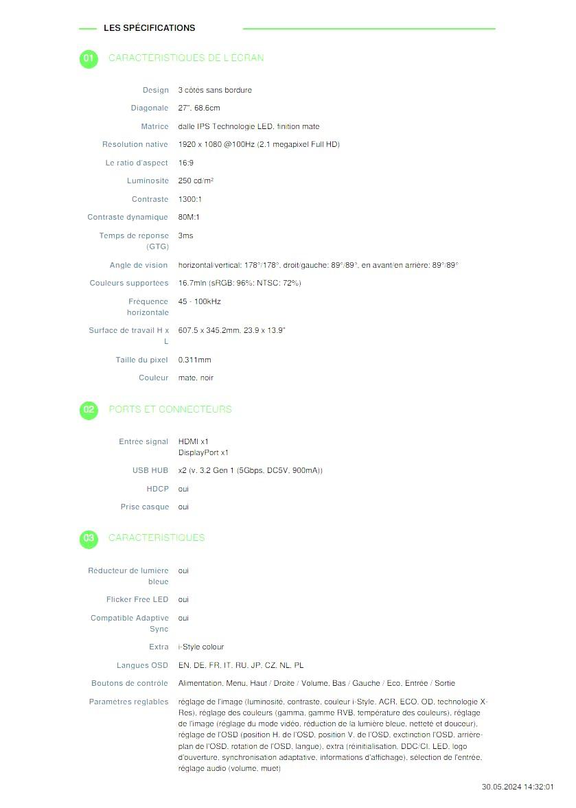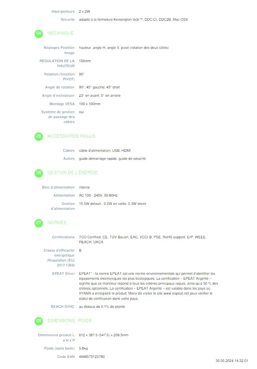 iiyama ProLite XUB2763HSU-B1 Monitor 27", IPS, 1920x1080/100Hz, 1H1DP, HAS