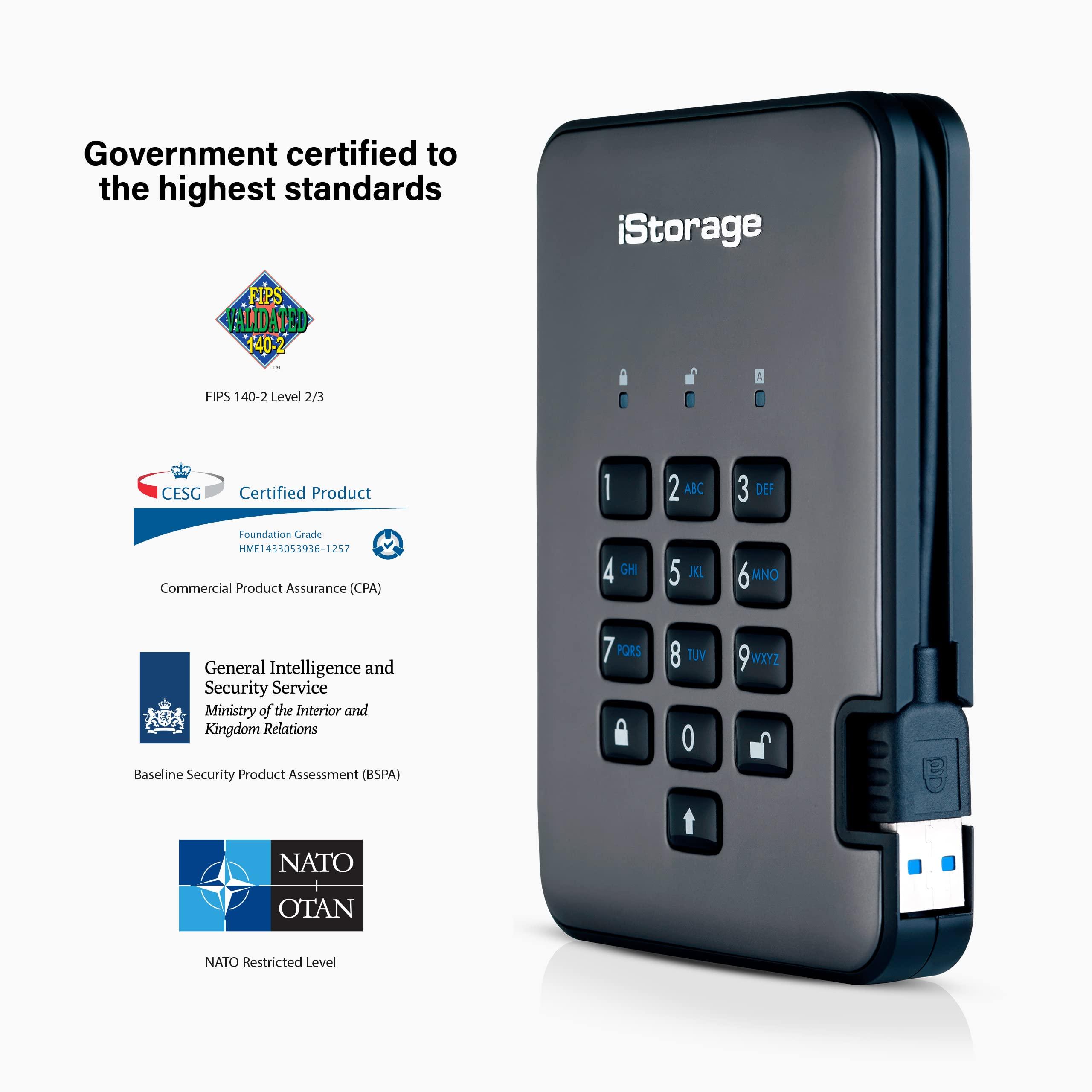 iStorage diskAshur PRO2 SSD 1 TB - SSD sicuro - FIPS Livello 2 - Protetto da password - Resistente alla polvere e all'acqua