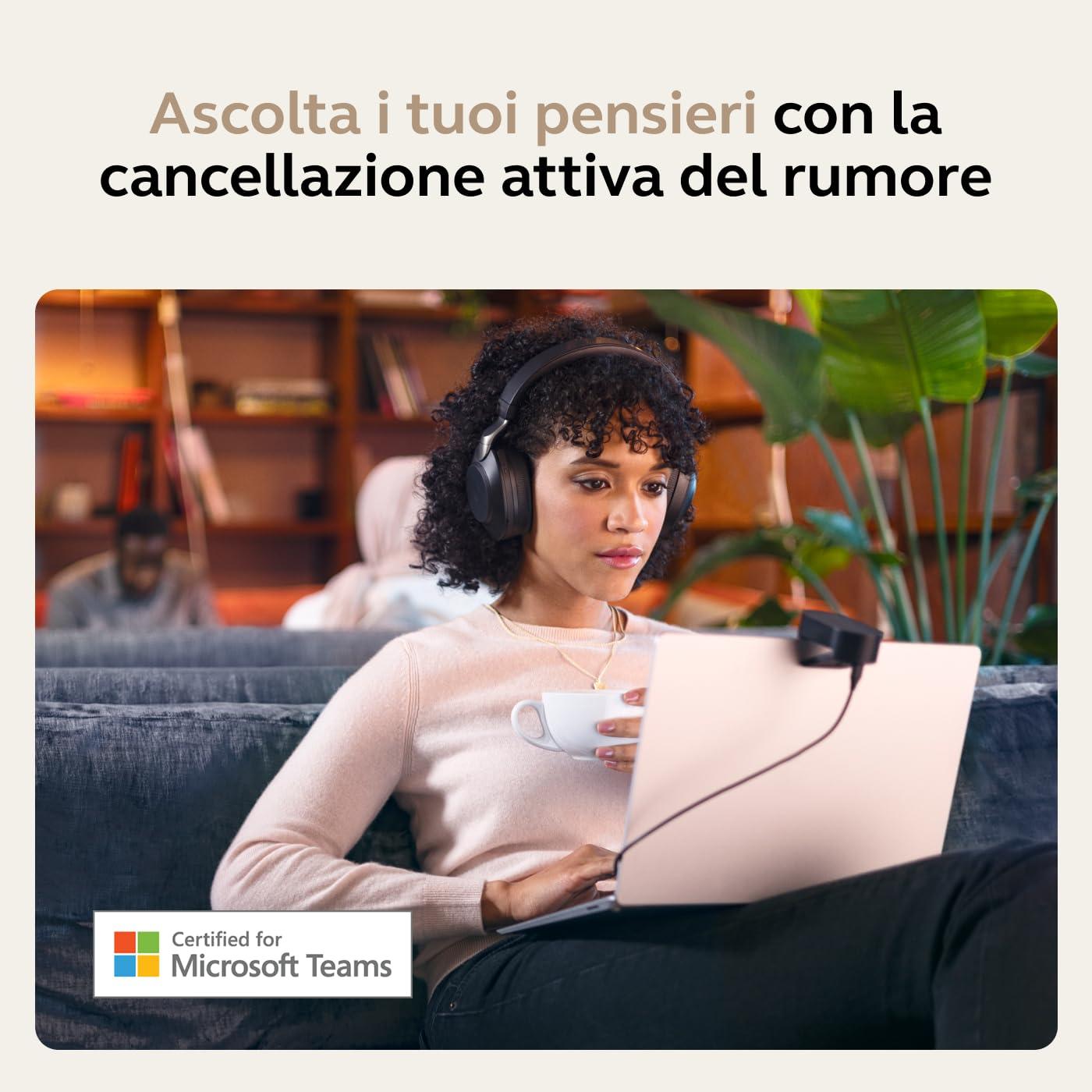Jabra Evolve2 85 Wireless PC Headset – Noise Cancelling Microsoft Teams Certified Stereo Headphones With Long-Lasting Battery, Ottimizzato per Microsoft Teams, Nero, Senza Supporto