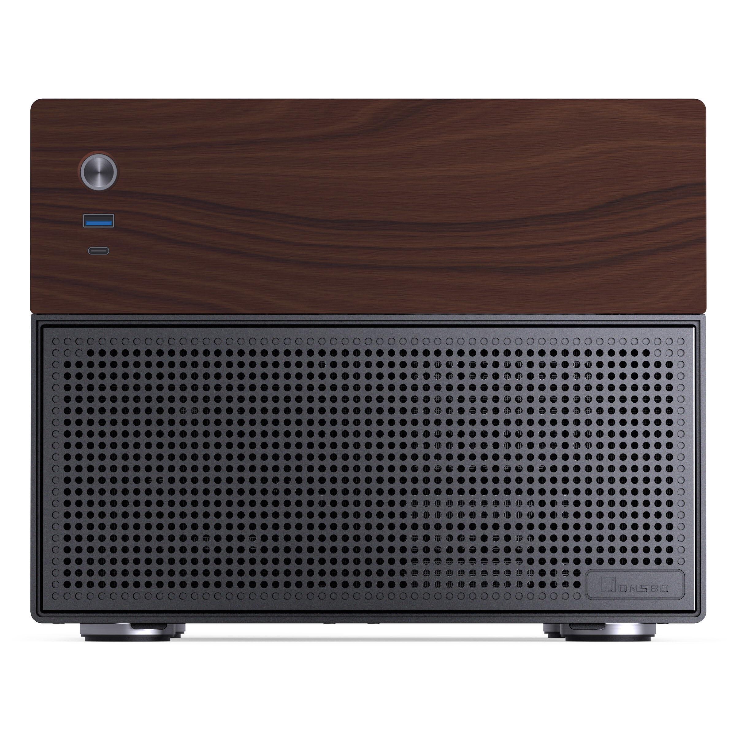 Jonsbo N4 NAS Case Nero – Case Micro-ATX compatto per NAS fai-da-te, spazio per 6x HDD da 3,5" e 2x da 2,5", 4 slot low-profile, USB-C e USB-A, design in legno