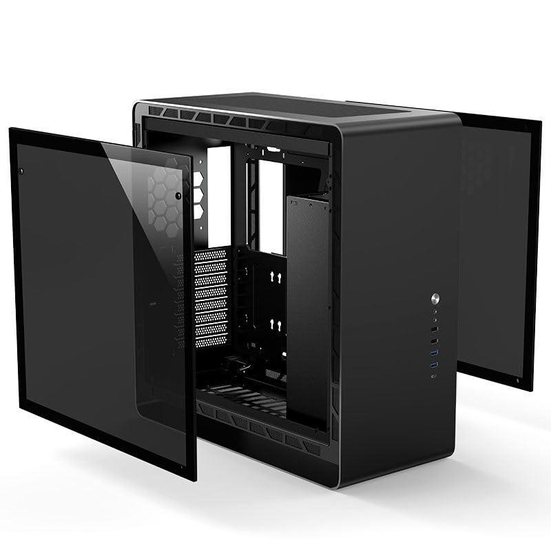 Jonsbo UMX6S Midi-Tower Case per PC – Nero | Case PC E-ATX in alluminio e acciaio con pannello laterale in vetro temperato, I/O frontale USB-C