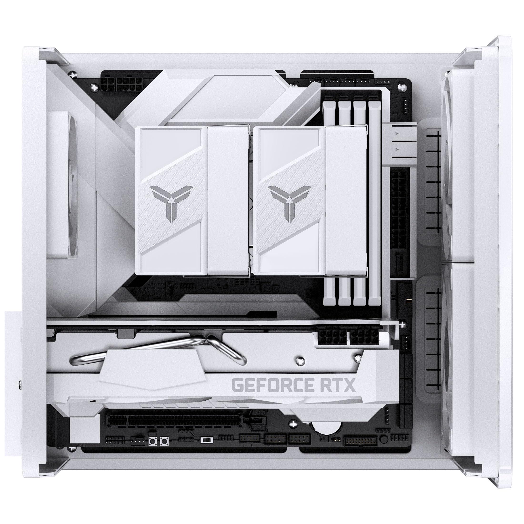 Il case combina acciaio bianco con elementi in legno e tre lati in vetro temperato, mettendo perfettamente in risalto l’hardware. La elegante parte frontale in legno crea un contrasto naturale e rende il V12 un vero e proprio punto focale, sia nella stanza da gaming che nell’home office.