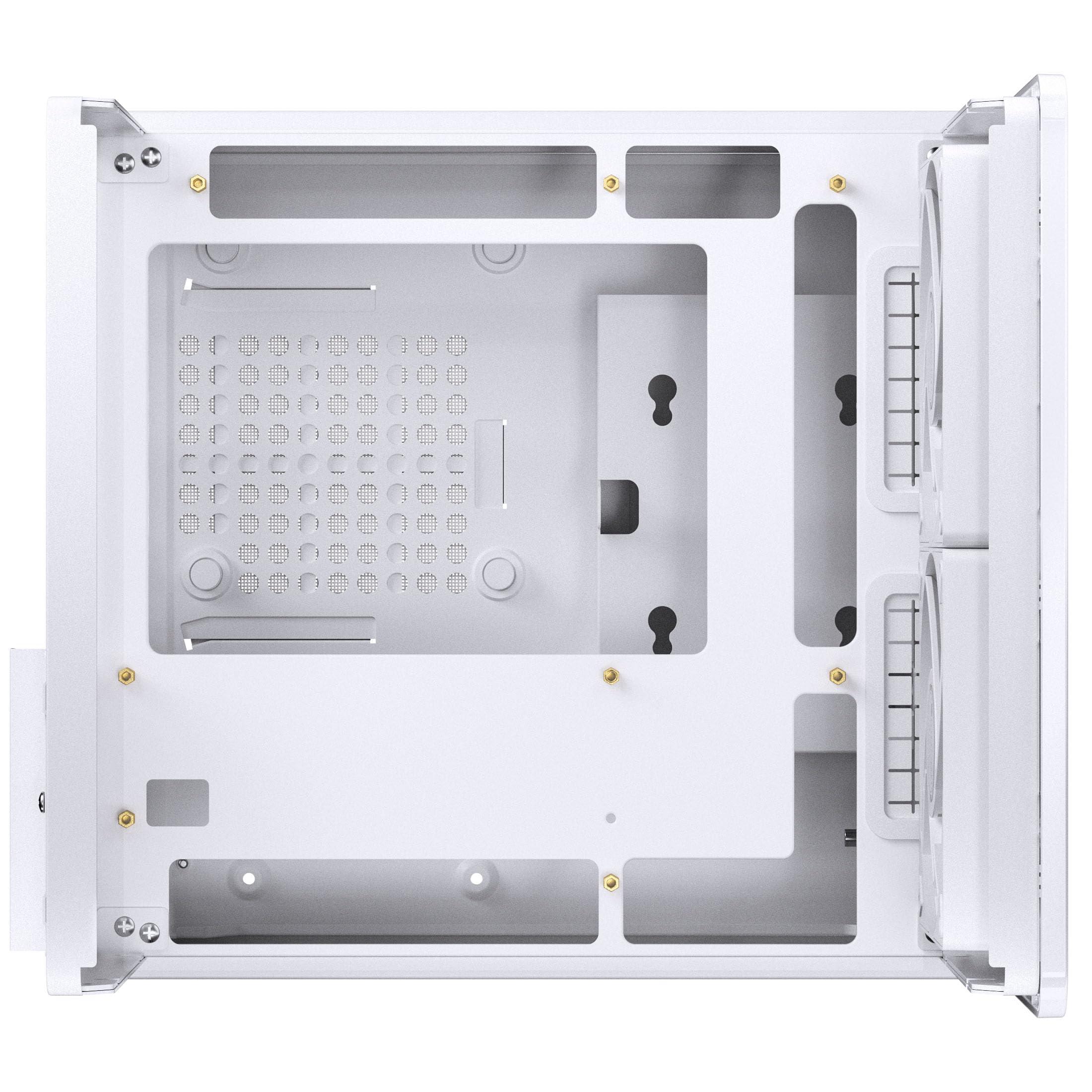 Jonsbo V12 Mini-Tower Case PC – Bianco, Micro-ATX, vetro temperato e frontale in legno, compatto, 2 ventole da 120 mm preinstallate