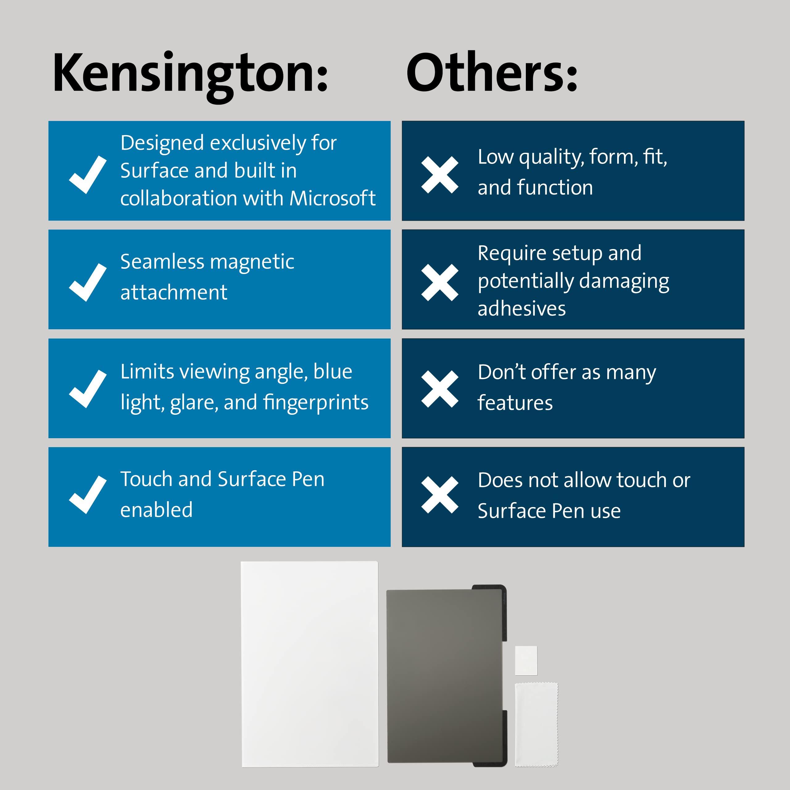 - Progettato esclusivamente per Surface, Kensington ha lavorato direttamente con Microsoft per garantire che lo schermo privacy funzioni perfettamente con il tuo Surface Laptop Studio