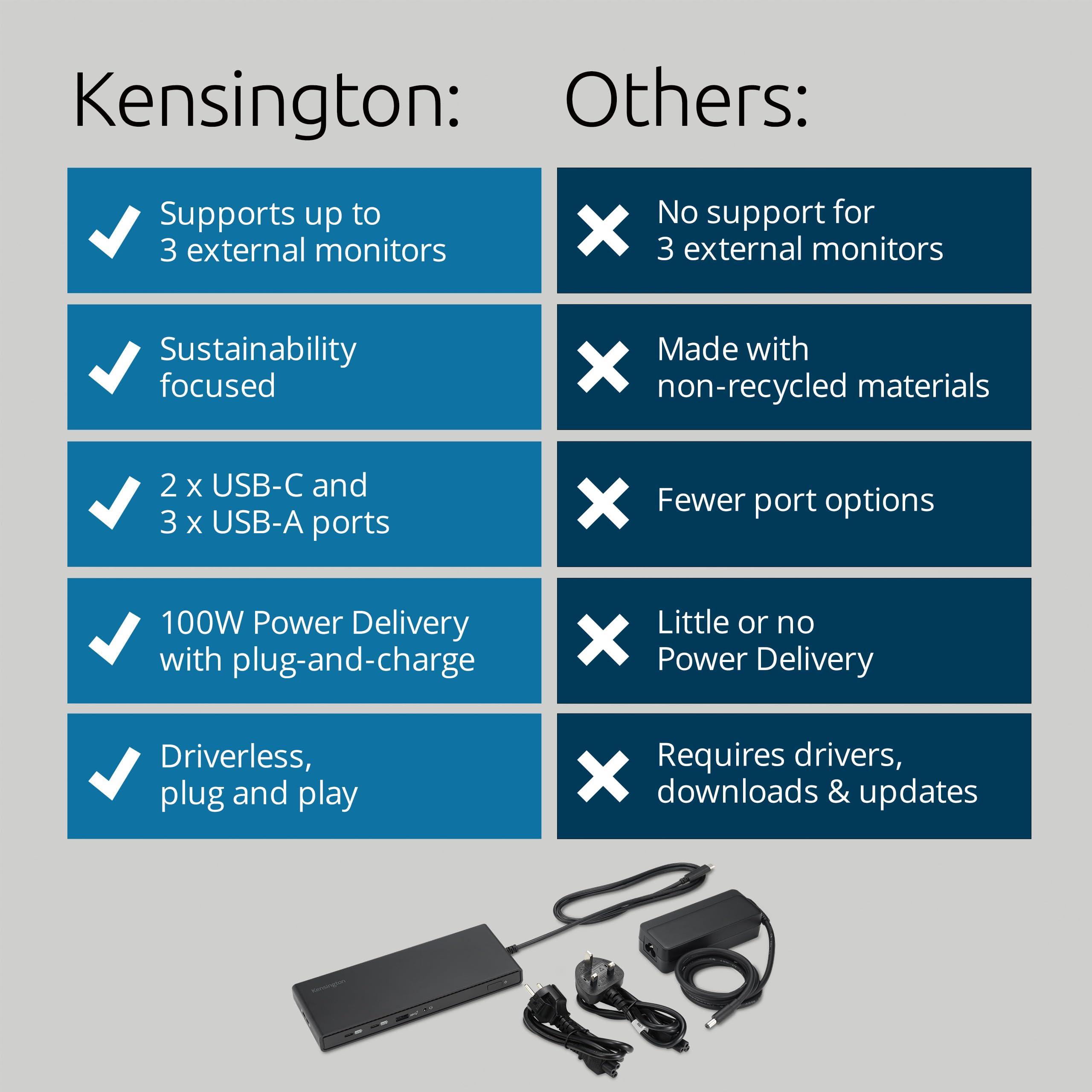 Kensington SD4842P Docking Station USB-C, Collega 3 Monitor HD, Alimentazione Erogata fino a 100 W, 5 porte USB Plug and Charge, Realizzata con il 73% di Materiale Riciclato Post-Consumo, K32810EU