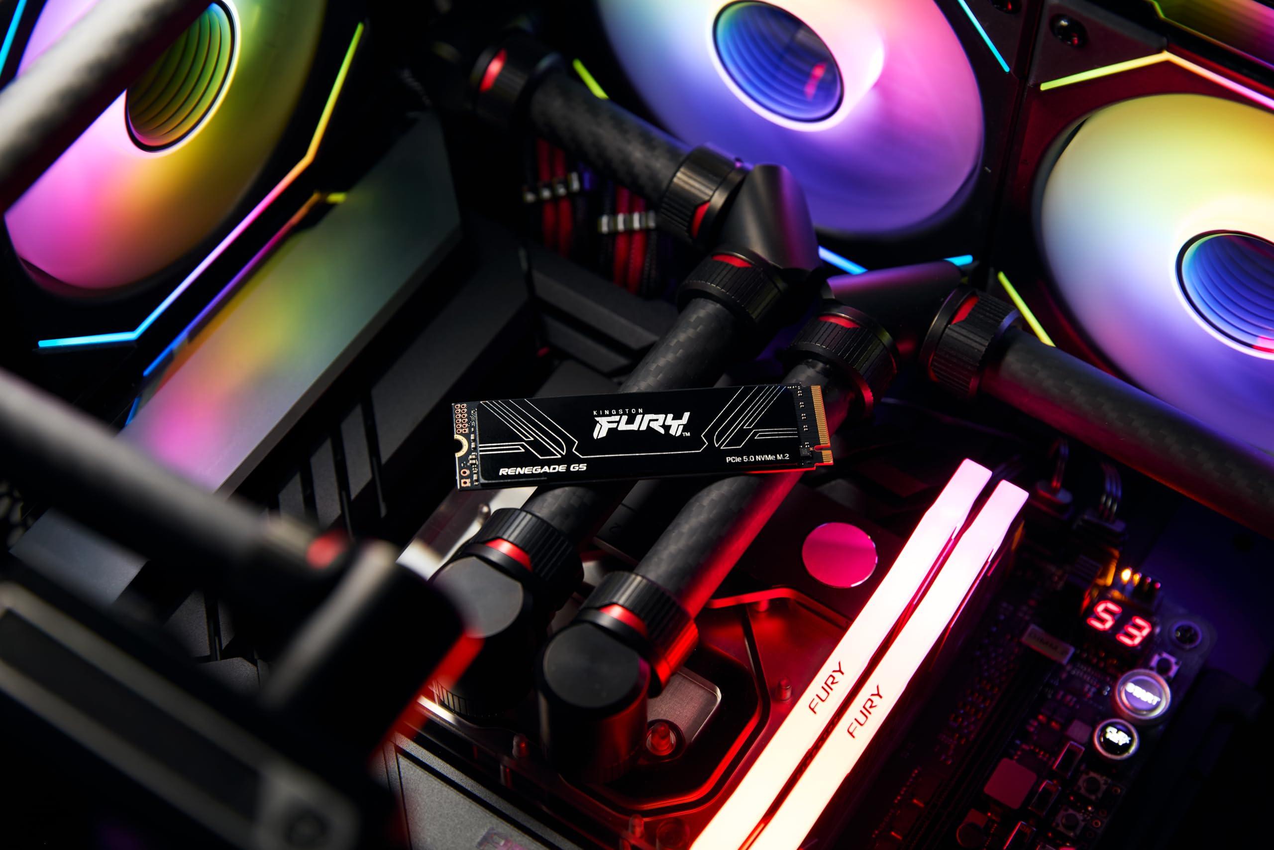 - Sfrutta tutto il potenziale del tuo sistema con l'SSD Kingston FURY Renegade G5 PCIe 5.0 NVMe M.2. Essendo equipaggiato con il più recente controller PCIe Gen5 x4 e la NAND 3D TLC, l'SSD Kingston FURY Renegade G5 offre velocità estreme fino a 14.800/14.000 MB/s in lettura/scrittura¹.