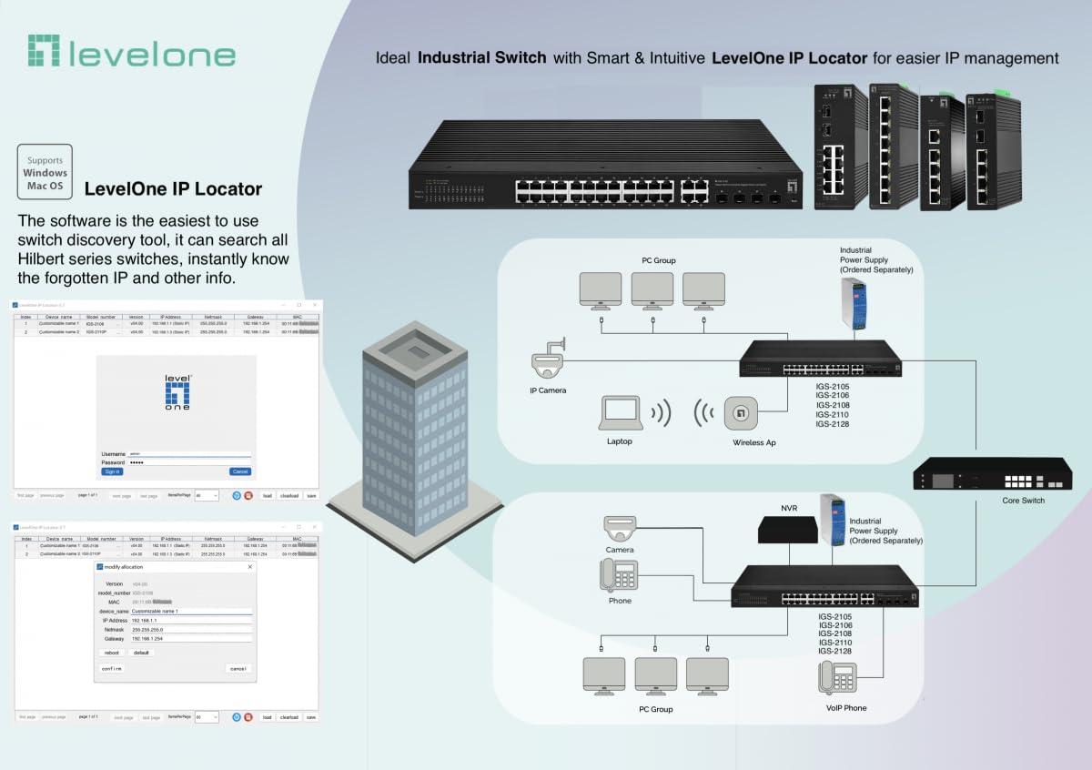 LevelOne IGS-2108 Hilbert Switch industriale Gigabit Smart Lite a 8 porte