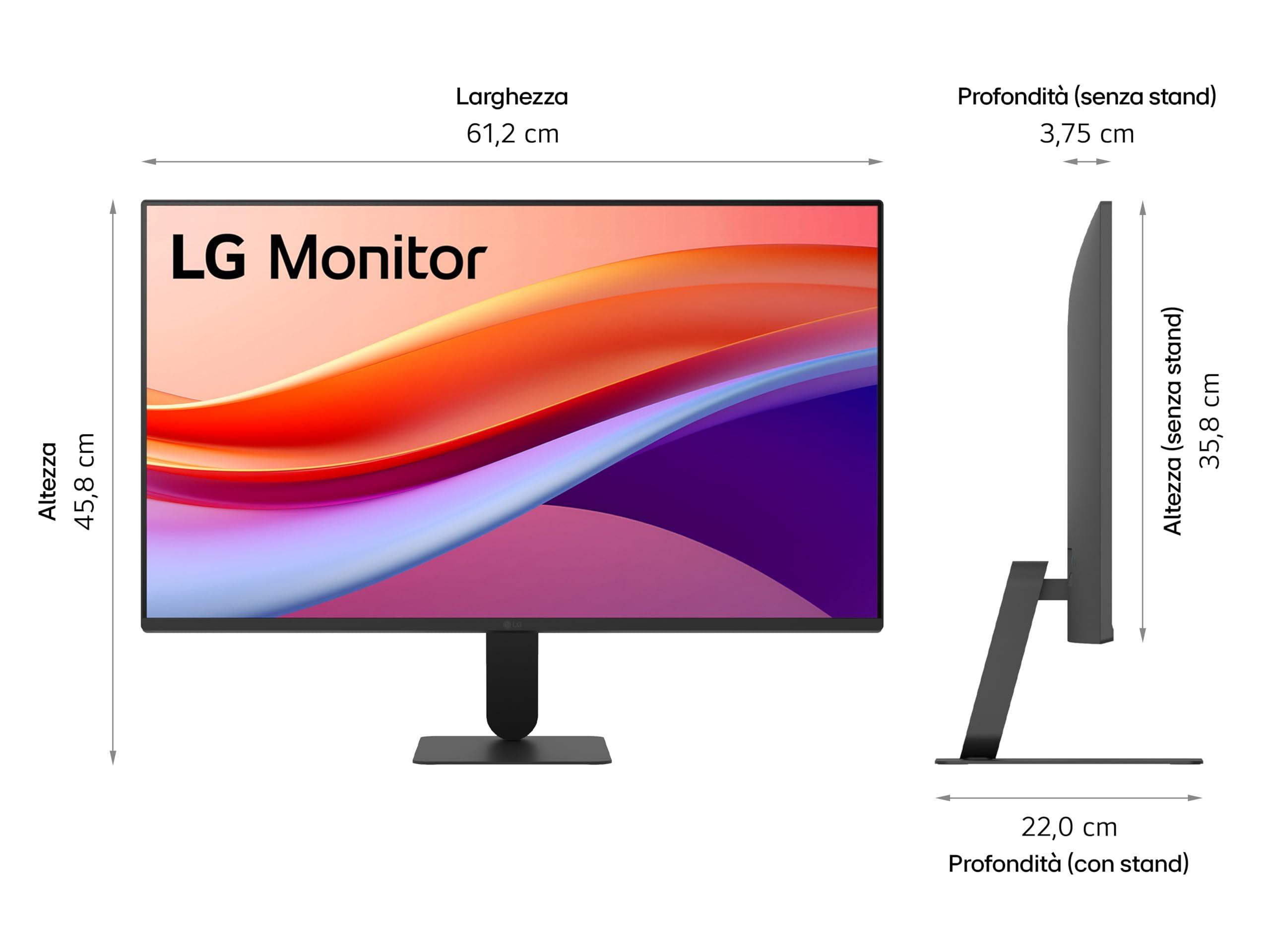 LG 27U411A Monitor 27" Full HD IPS, HDR 10, 120Hz, 1ms MBR, HDMI, D-Sub (VGA), Uscita cuffie, 1920x1080, sRGB 99%, Schermo Antiriflesso, Flicker Safe, Reader Mode, Nero