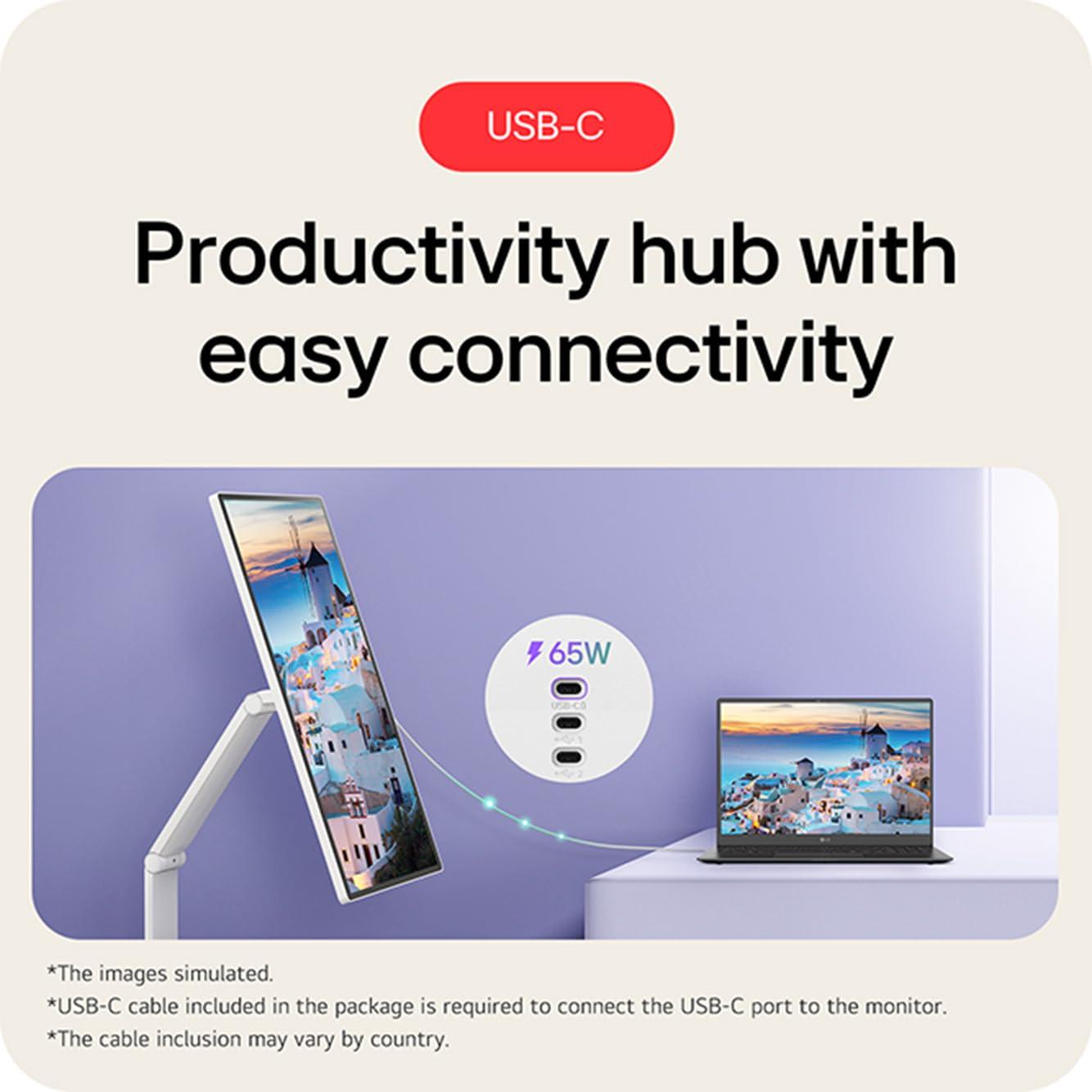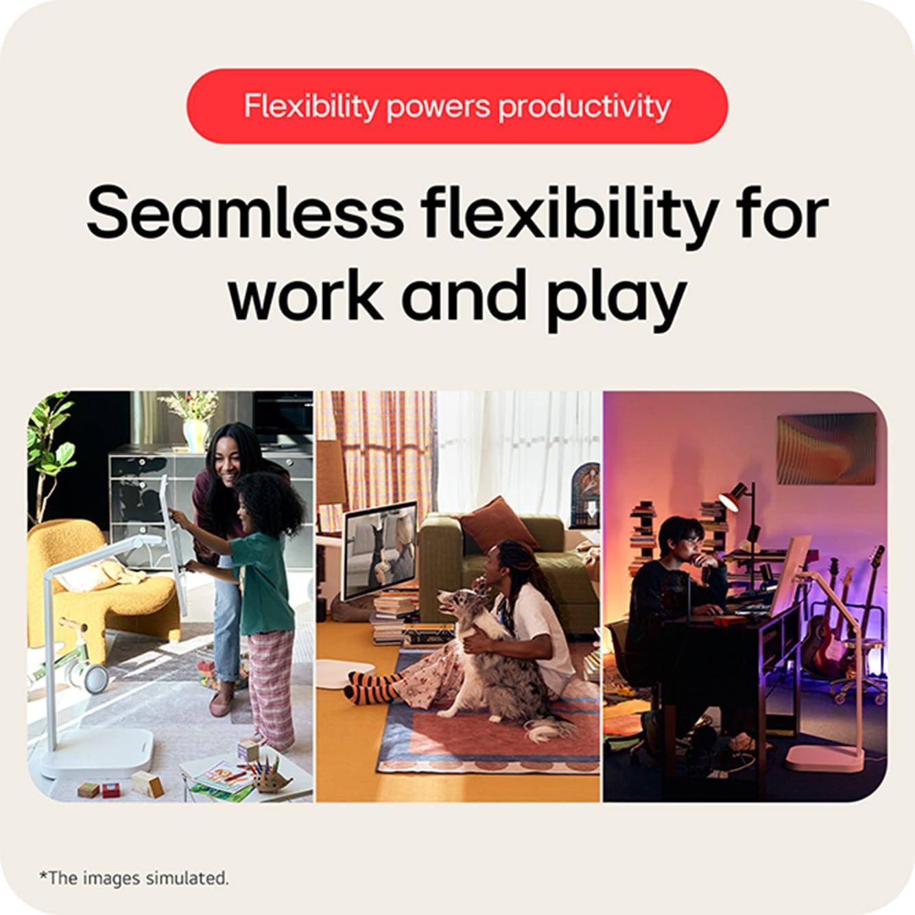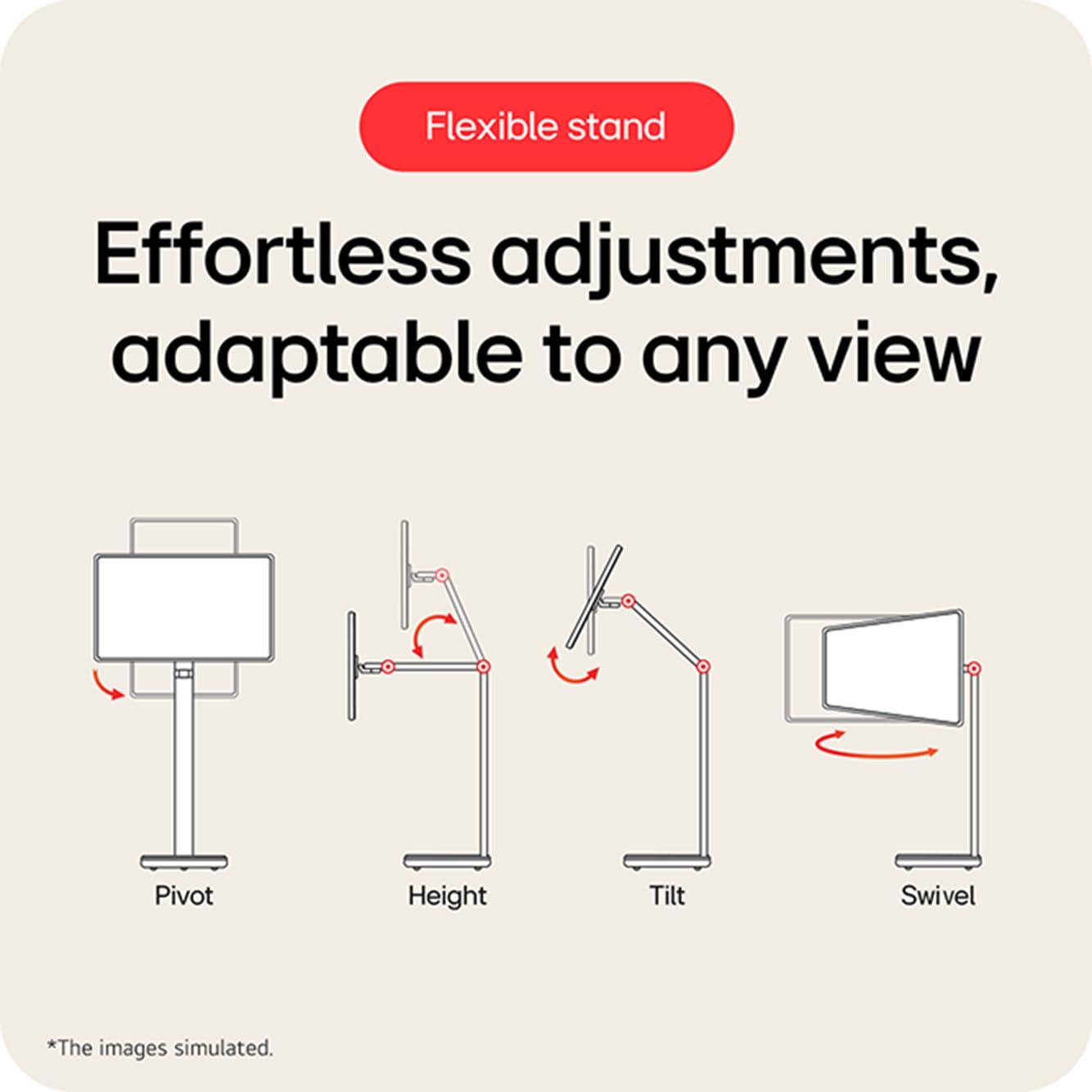 - Angoli adattivi e personalizzabili - Con il suo design regolabile e versatile, il LG Smart Monitor Swing può essere posizionato in numero di angoli per adattarsi a vari tipi di contenuti, garantendo agli utenti la libertà e la flessibilità di godere di un'esperienza visiva confortevole in qualsiasi posizione - Supporto regolabile in inclinazione, altezza, rotazione e modalità ritratto con ruote.