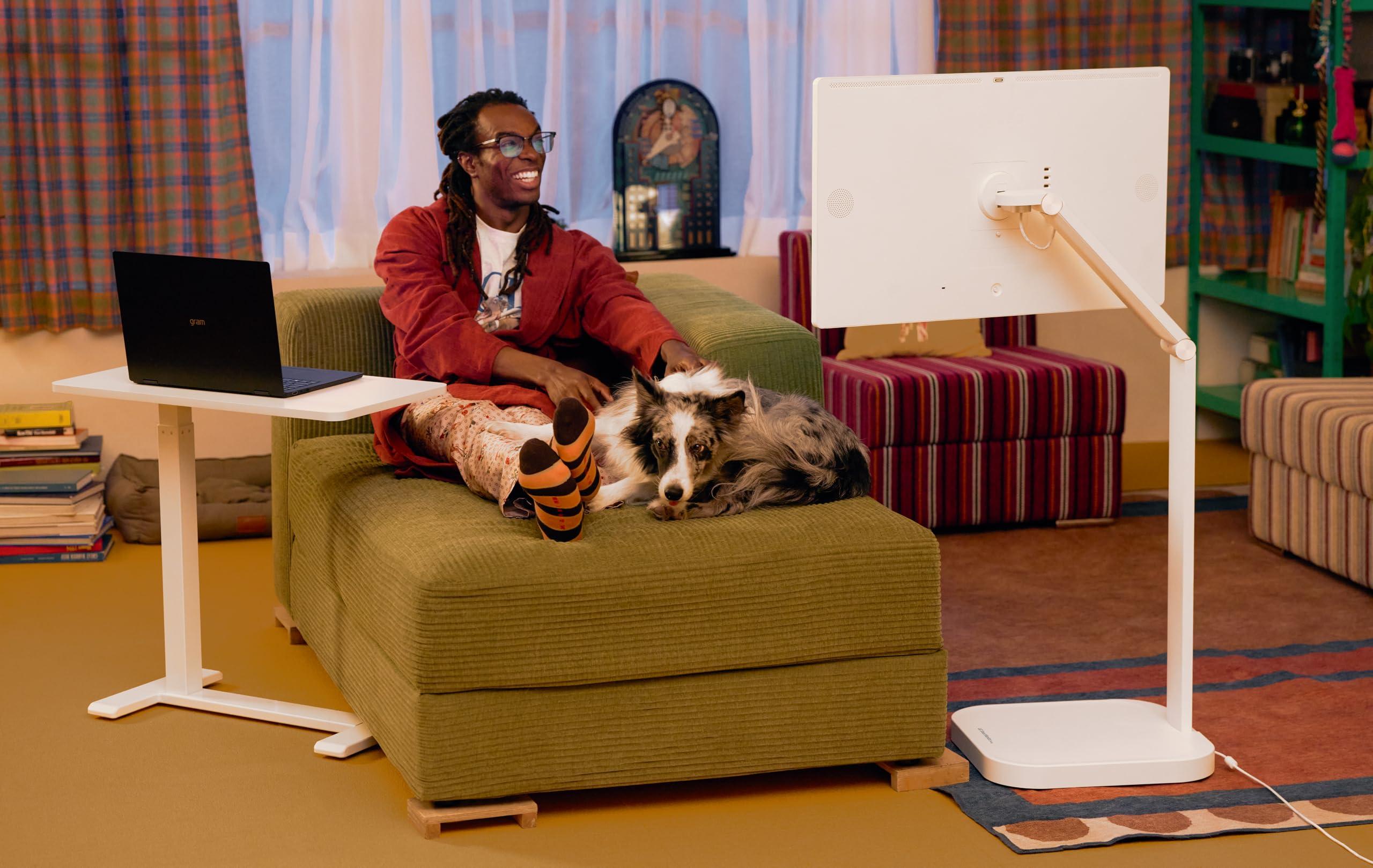 - LG Smart Monitor Swing è dotato di un versatile supporto girevole LG Smart Monitor con cinque ruote lisce, garantendo una mobilità eccezionale. Sposta facilmente il monitor in qualsiasi punto preferito, dall'accogliente divano alla cucina o alla camera da letto, per una configurazione davvero flessibile e comoda