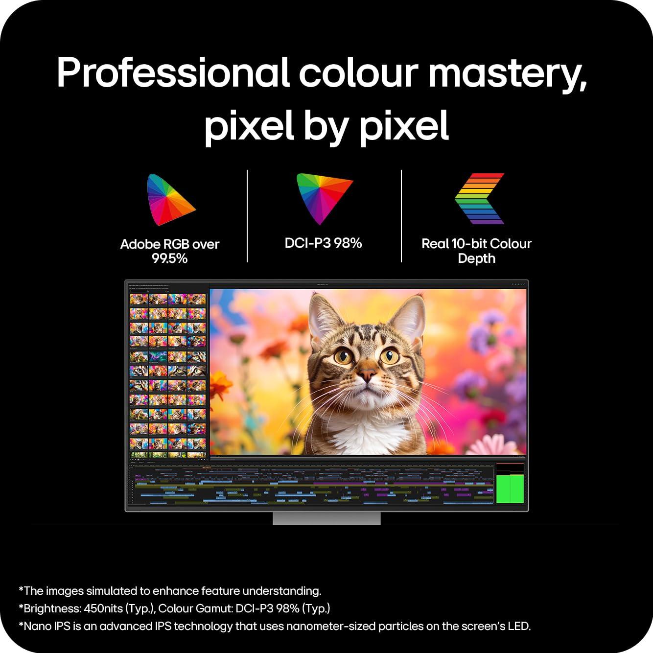 - DCI-P3 98% (Typ. ), Adobe RGB 99,5%, Profondità colore reale a 10 bit