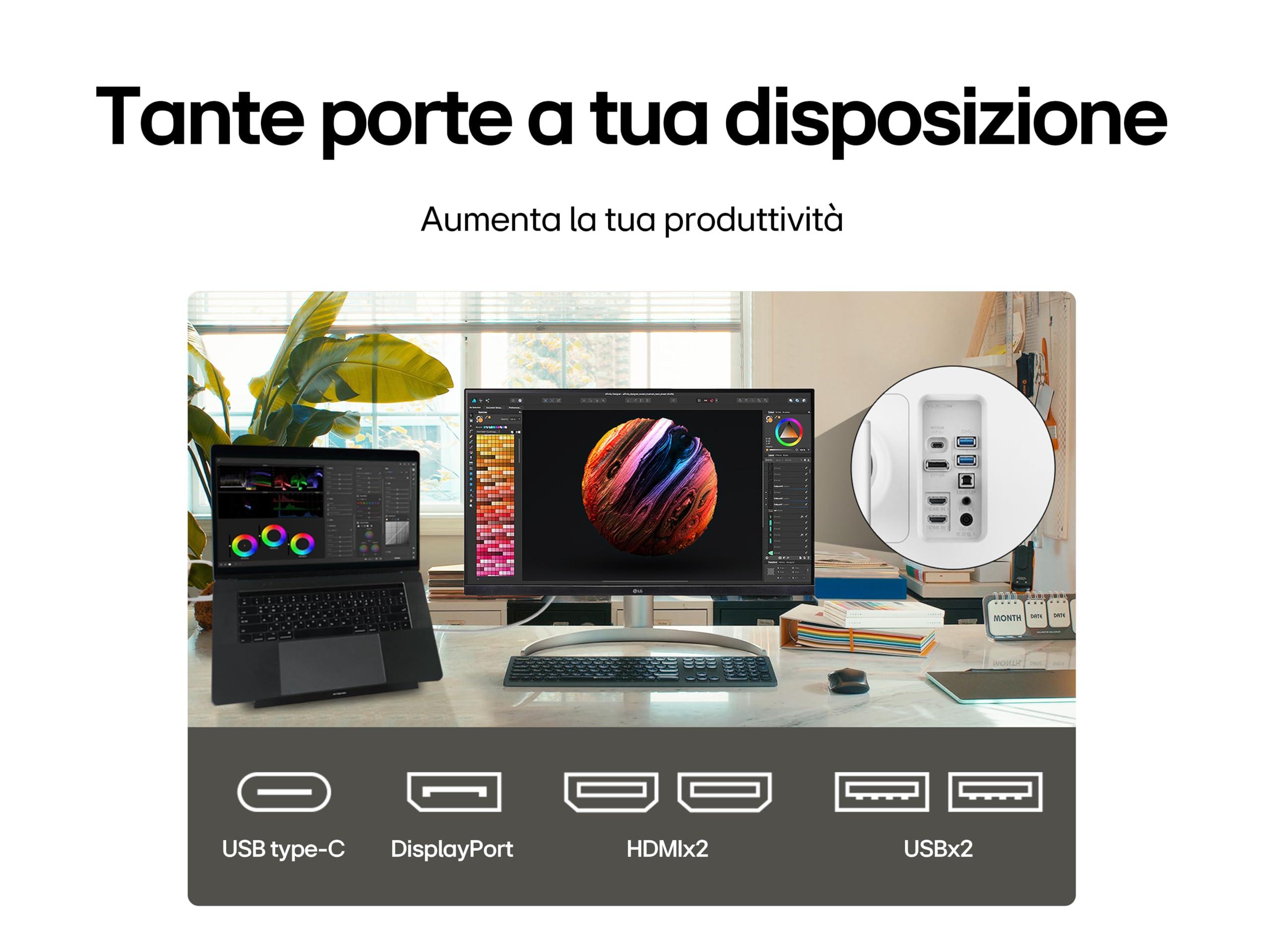 LG 32UQ850V Monitor 32" UltraHD 4K LED IPS HDR 400, 3840x2160, AMD FreeSync 60Hz, Audio Stereo 10W, HDMI 2.0 (HDCP 2.3), Display Port 1.4, USB-C (90W), USB 3.0, AUX, Stand Pivot, Flicker Safe, Bianco