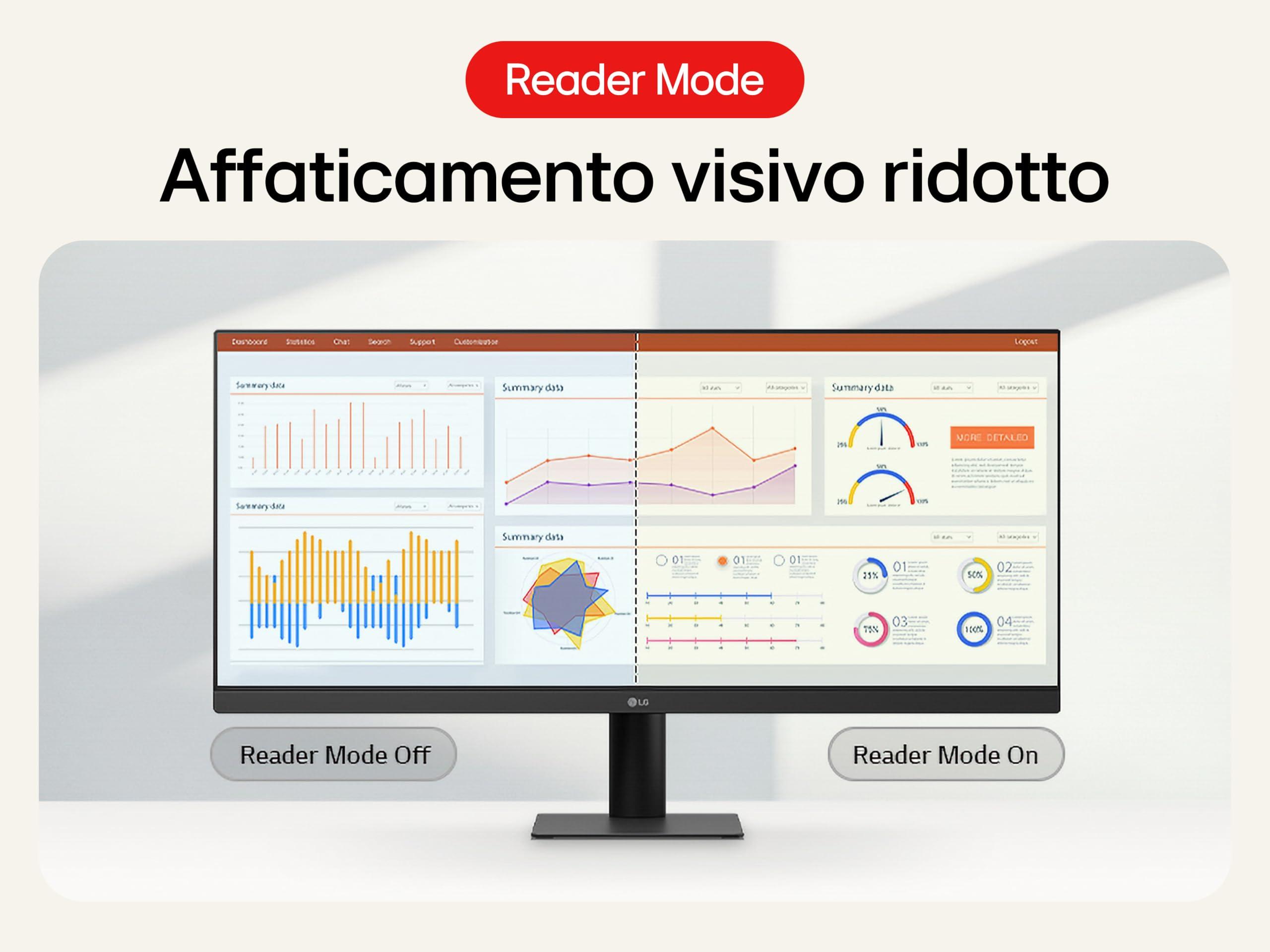LG 34U511A Monitor UltraWide 21:9 34" IPS, WFHD (2560x1080), HDR 400, 100Hz, sRGB 99%, HDMI, DisplayPort, Uscita Cuffie, Schermo Antiriflesso, Reader Mode, Flicker Safe, Nero