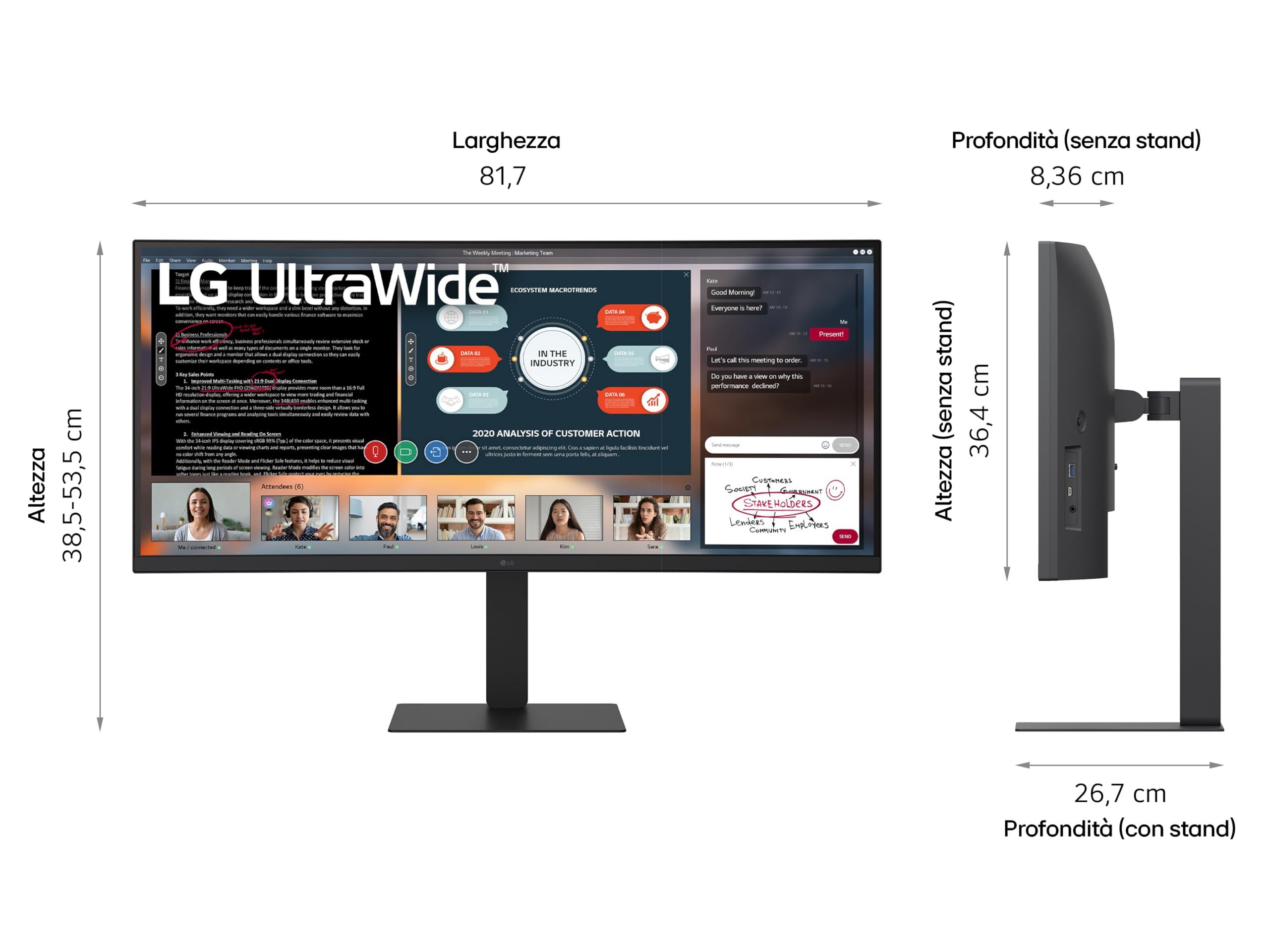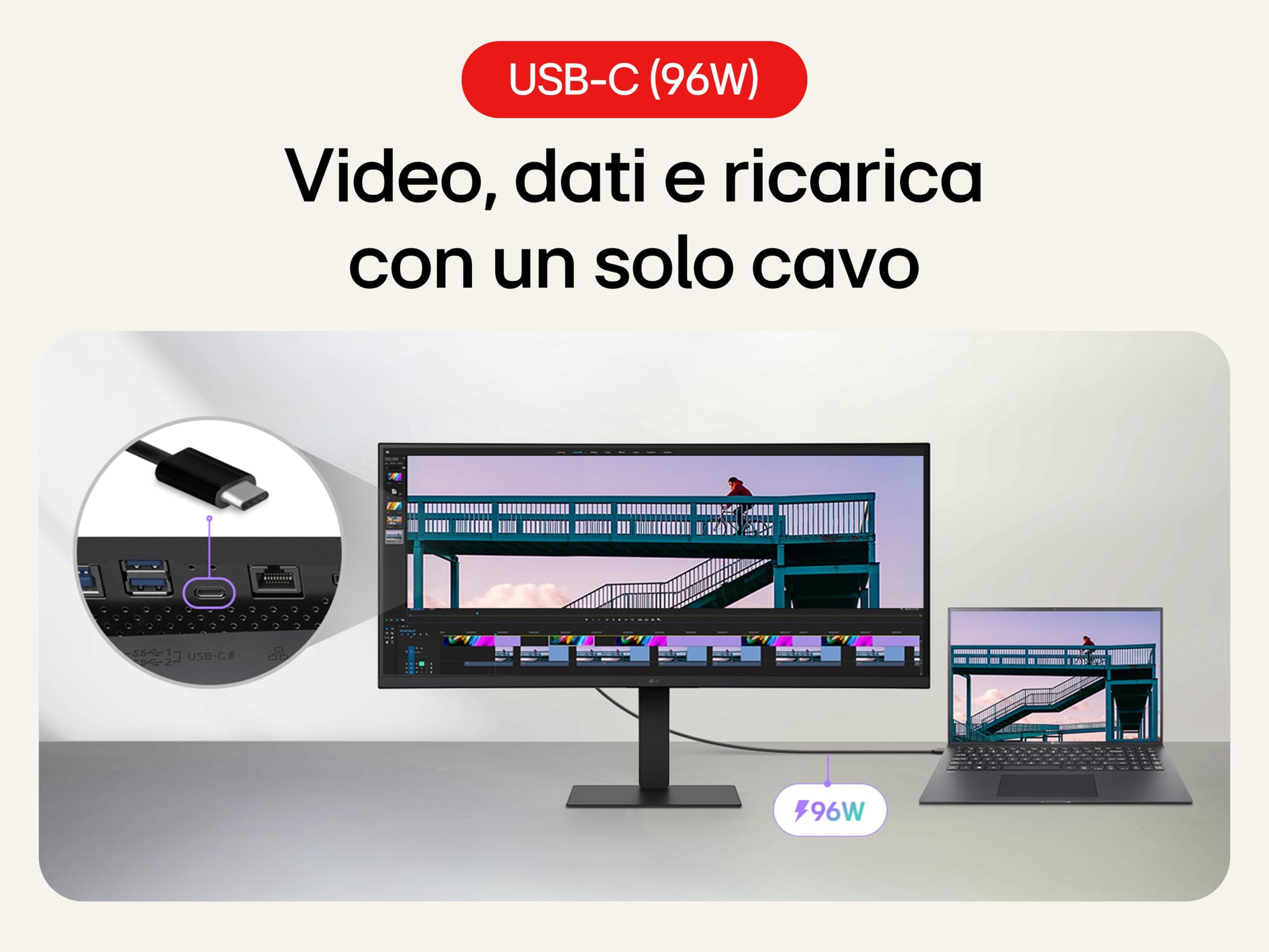 LG 34U650A Monitor UltraWide 21:9 Curvo 34" WQHD (3440x1440), IPS, HDR 10, sRGB 99%, Speaker Stereo 14W, USB-C Hub USB, Stand regolabile, Nero