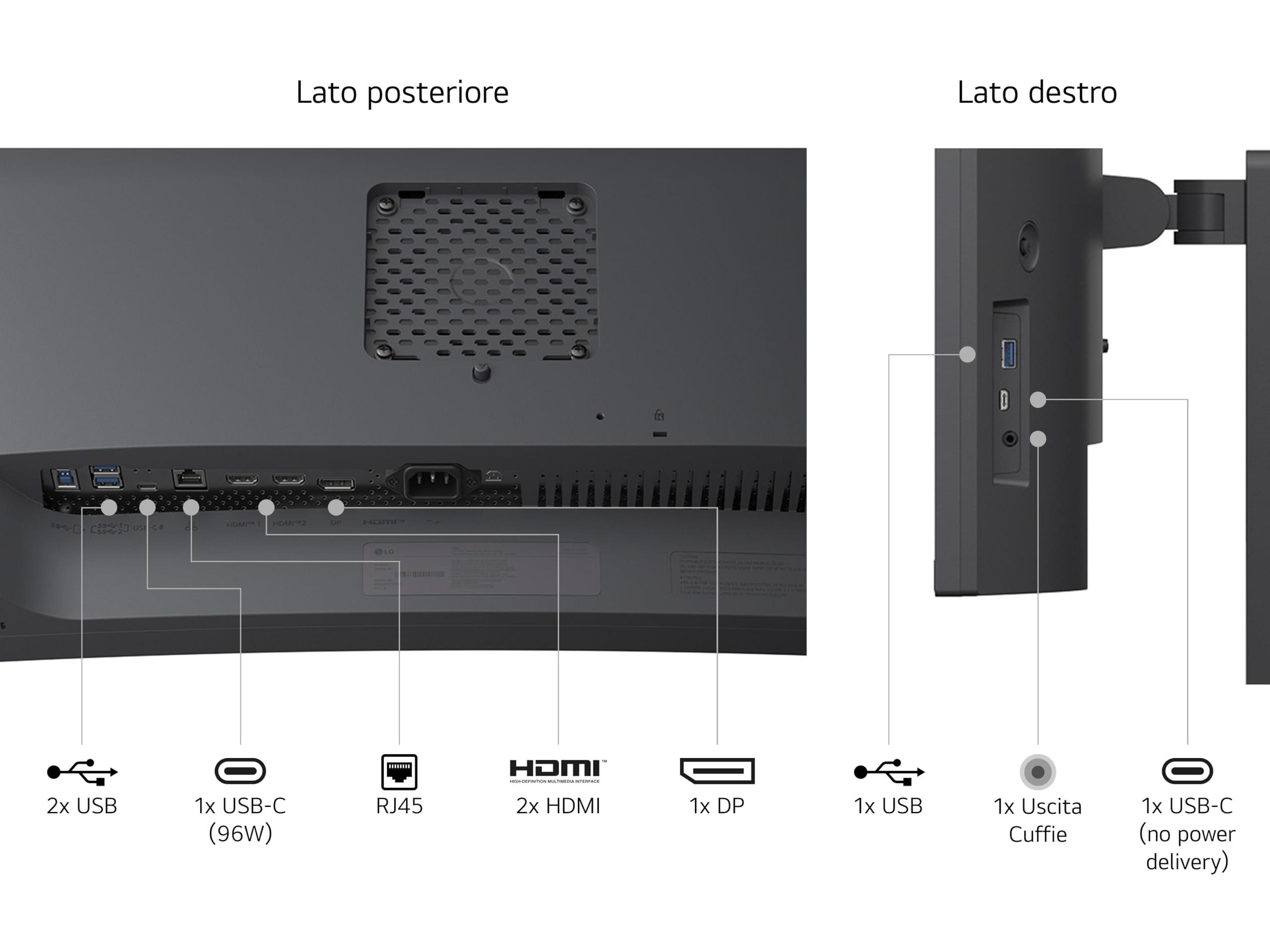 - USB-C, RJ45 e HUB USB: collega e alimenta (96W) il laptop con un solo cavo e trasforma il tuo schermo in una docking station, con hub USB e connessione di rete cablata stabile e veloce grazie alla porta LAN