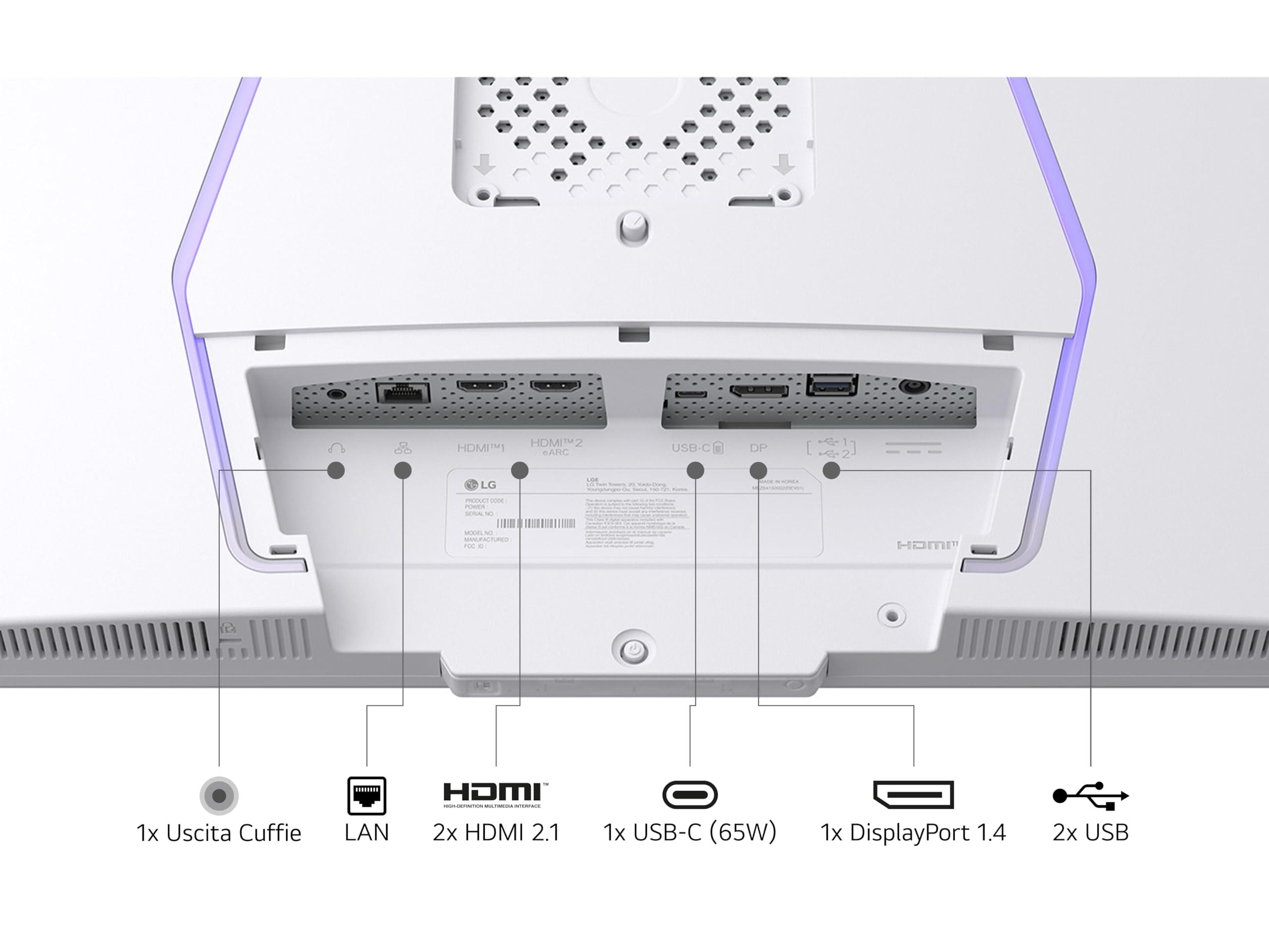 LG UltraGear 32G810SA Monitor Gaming 32", UHD 4K, IPS 1ms, 144Hz, Funzioni Smart con webOS 24, HDR 400, G-Sync Compatible, AMD FreeSync Premium, VRR, Speaker 14W, HDMI 2.1, USB-C, WiFi, BT, Bianco
