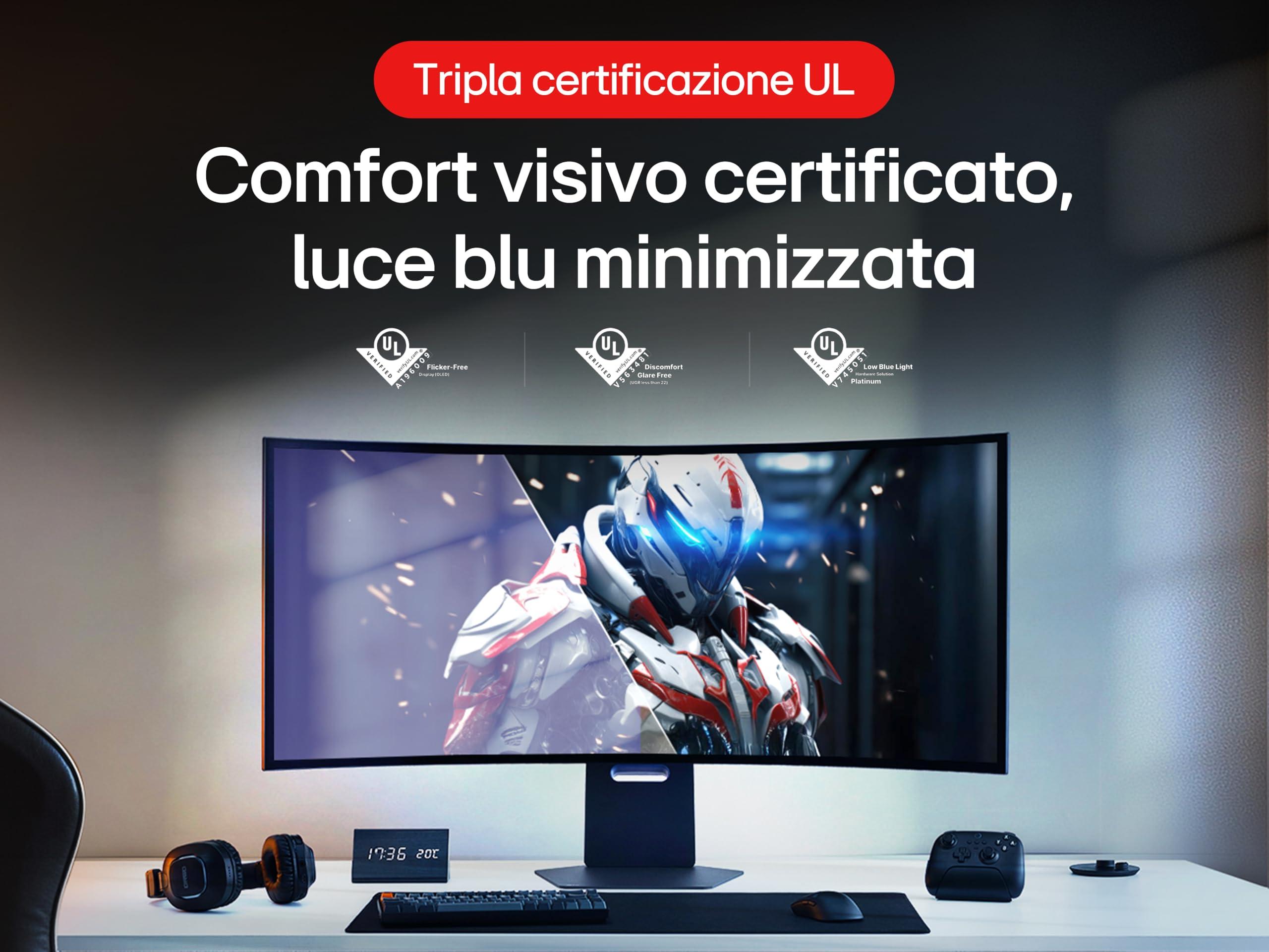 - DESIGN DA GAMER: esalta la tua esperienza di gioco con il formato 21:9 curvo (800R) dal design accattivante senza cornici su tutti i lati e con l'illuminazione ambientale. La base regolabile in altezza, inclinazione e swivel ti aiuta a giocare nella posizione più confortevole.