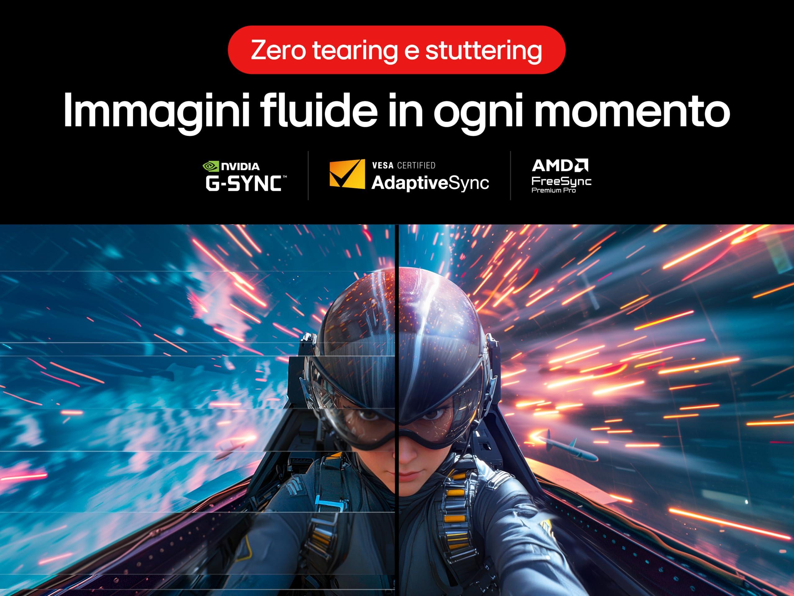 - G-SYNC E FREESYNC PREMIUM PRO: gioca con la massima fluidità anche nelle azioni più concitate, con effetti di tearing e stuttering ridotti