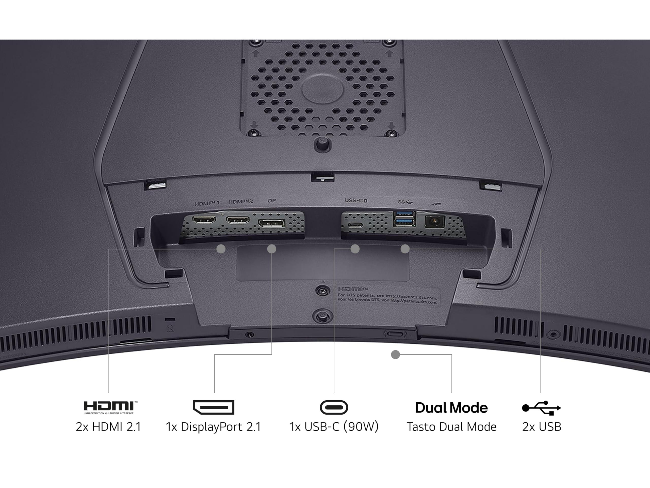 LG UltraGear OLED 45GX950A Monitor Gaming 45" 5K2K (5120x2160), 21:9 Curvo, 165Hz, Dual Mode, 0,03ms (GtG), Speaker Stereo 10W, G-Sync, FreeSync Premium Pro, HDMI 2.1, DisplayPort 2.1, USB-C, Nero