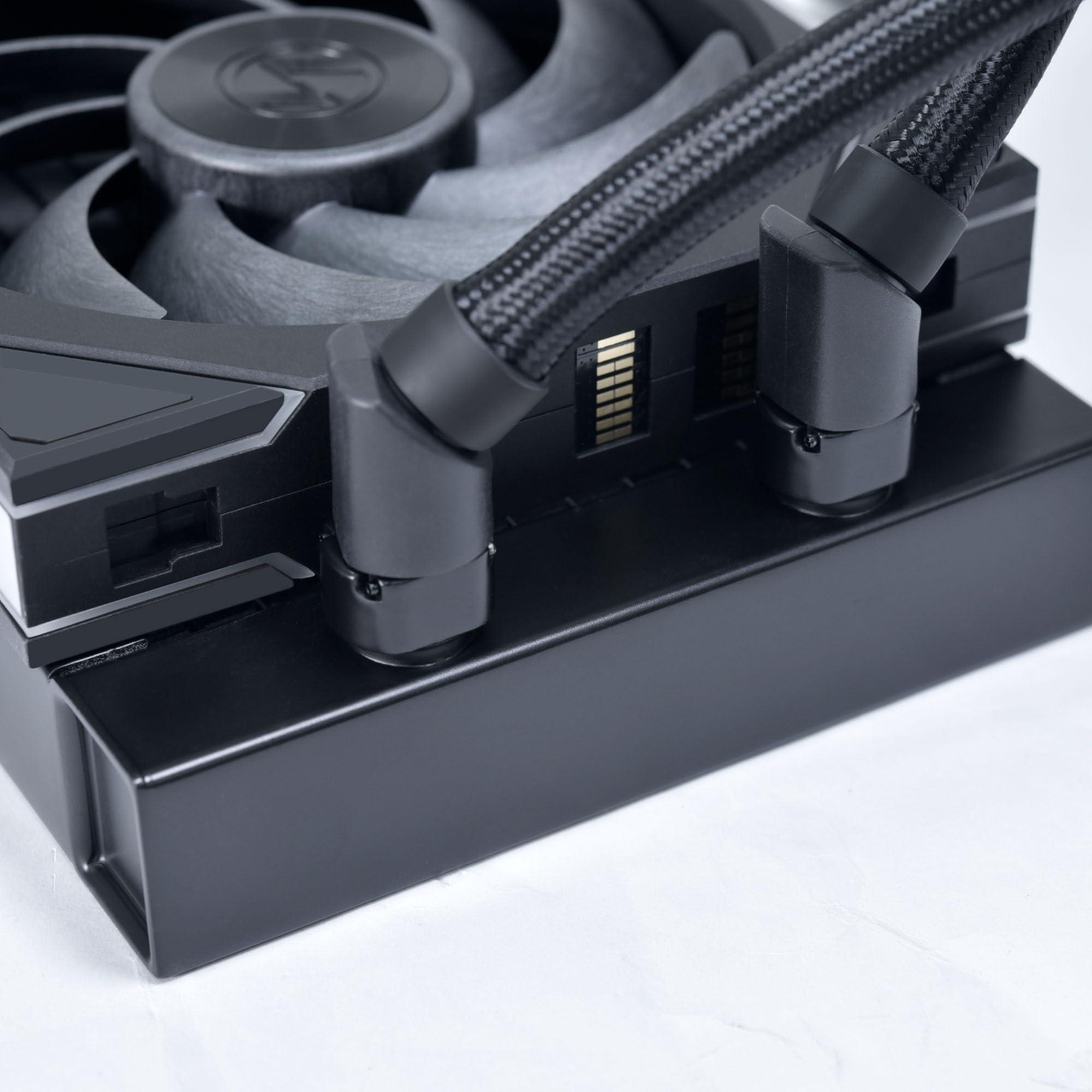 Grazie ai connettori girevoli il montaggio è flessibile nella parte anteriore, sul coperchio o sul lato. La pasta termica premontata rende l'installazione rapida e senza stress. Risultato: un sistema di raffreddamento ad acqua AiO che combina perfettamente prestazioni, aspetto e semplicità di utilizzo, in un look elegante e nero intenso per i PC da gioco di ultima generazione.