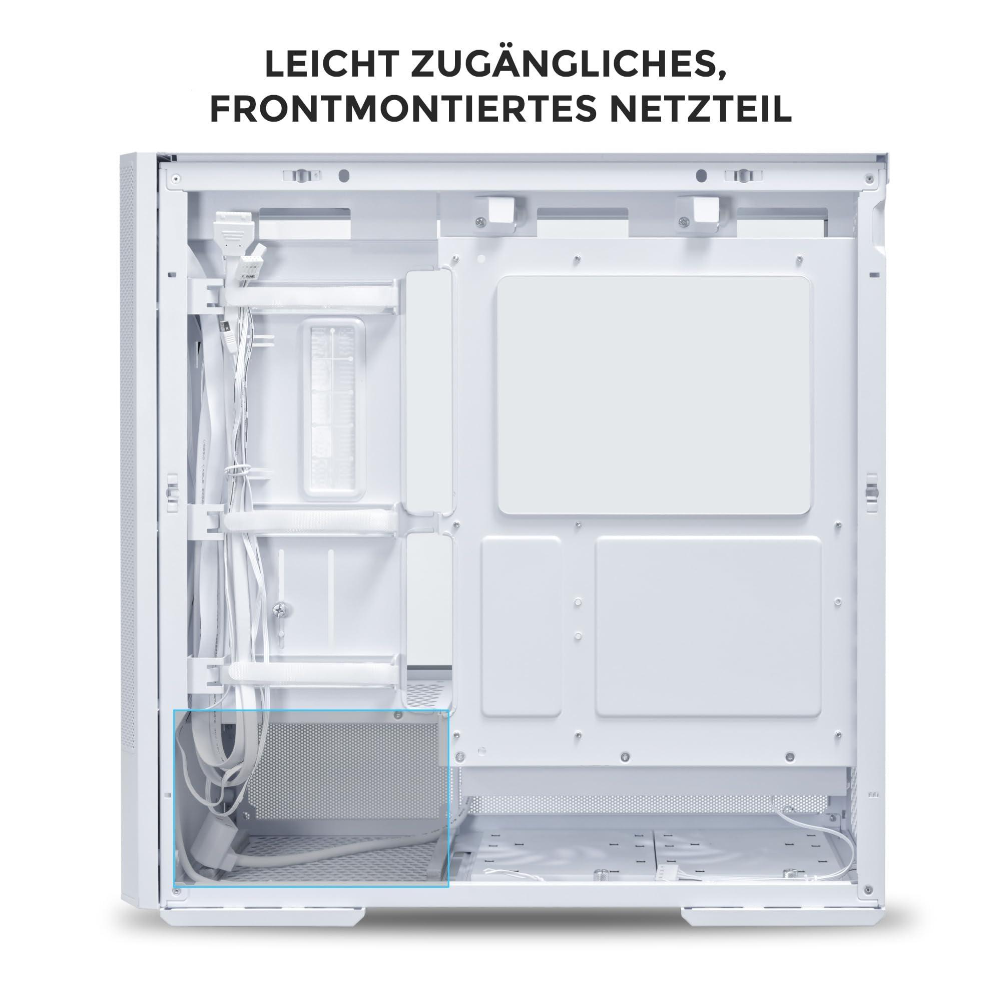 - Facile gestione dei cavi: questa custodia per PC da gioco bianca offre un layout intelligente con alimentatore anteriore per un'installazione pulita e ordinata.