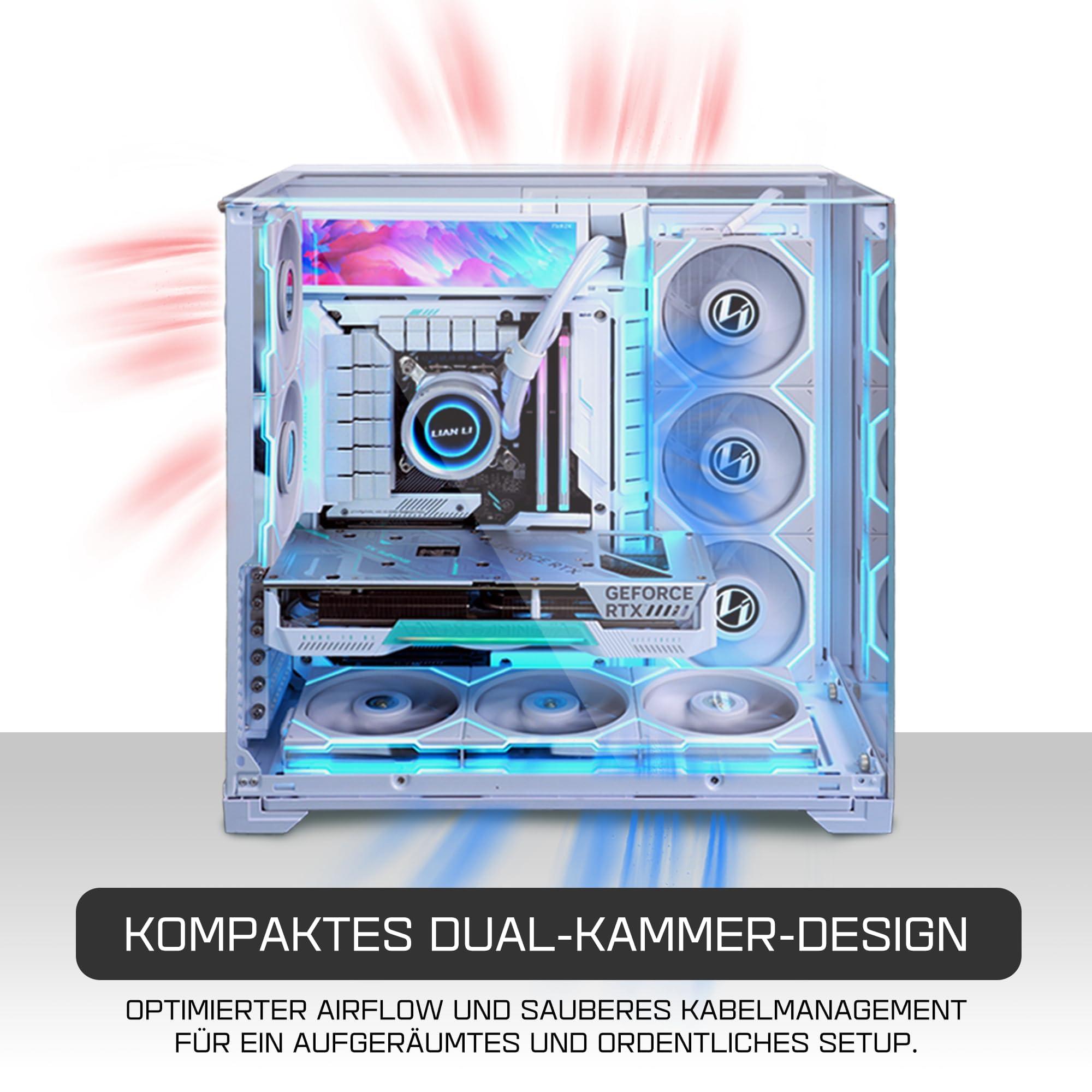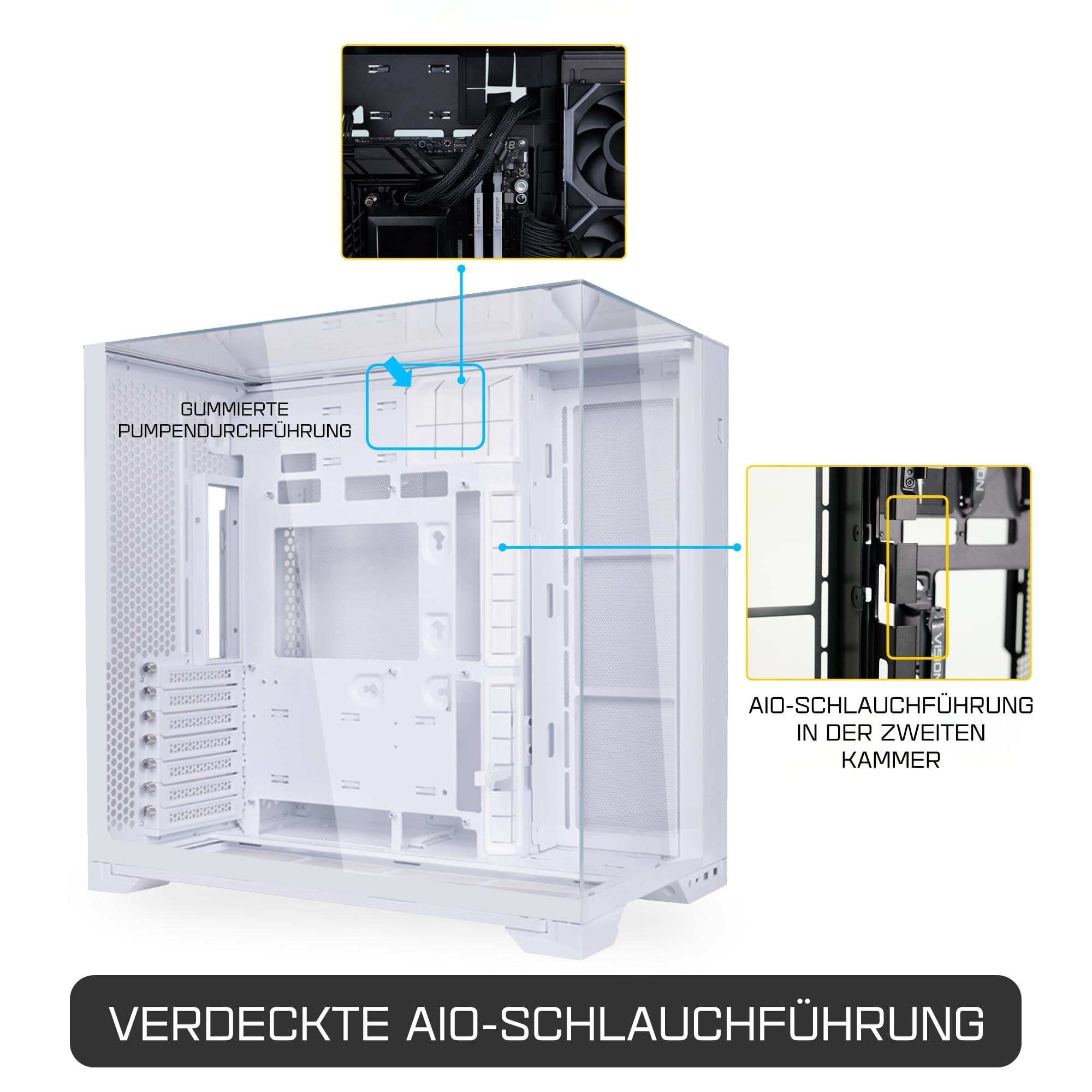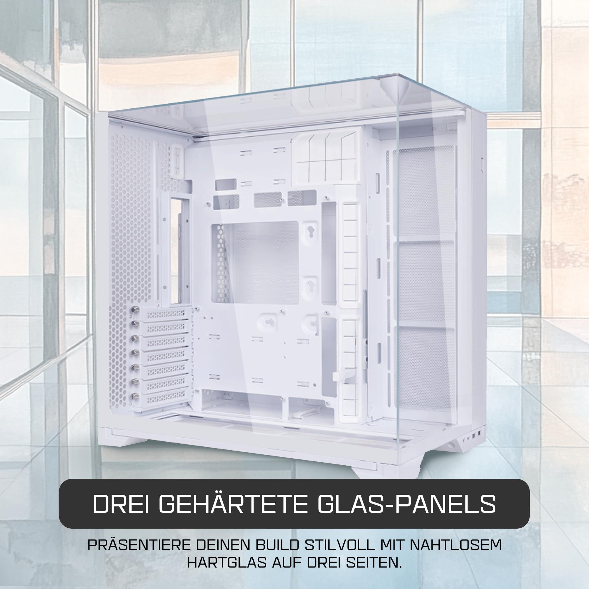 - SUPPORTO HARDWARE COMPLETO: L'interno ospita una vasta gamma di hardware di raffreddamento e gaming, tra cui radiatori da 360 mm, GPU da 408 mm montate verticalmente (kit venduto separatamente) e schede madri E-ATX (fino a 280 mm).