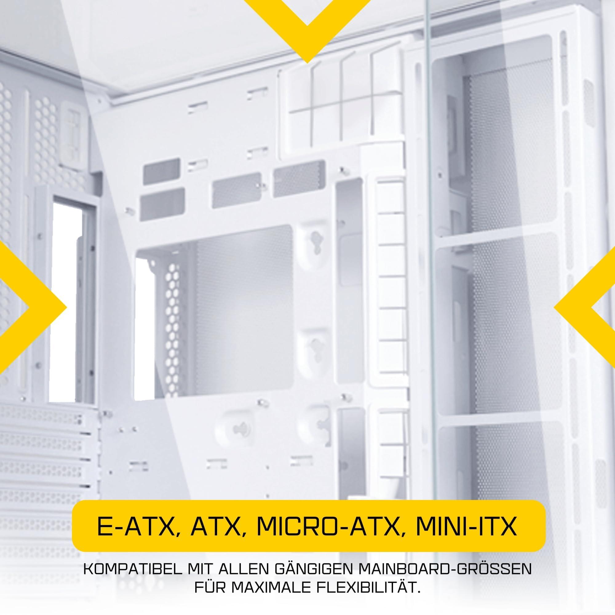 - CASE ATX PER PC IN MOSTRA: Mostra elegantemente il tuo hardware da gioco con i tre pannelli in vetro temperato. Il vetro frontale, superiore e laterale si fondono perfettamente per creare una vista panoramica.