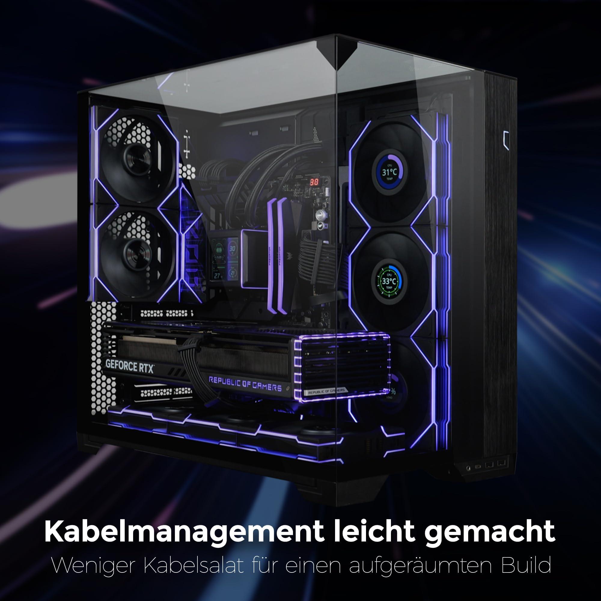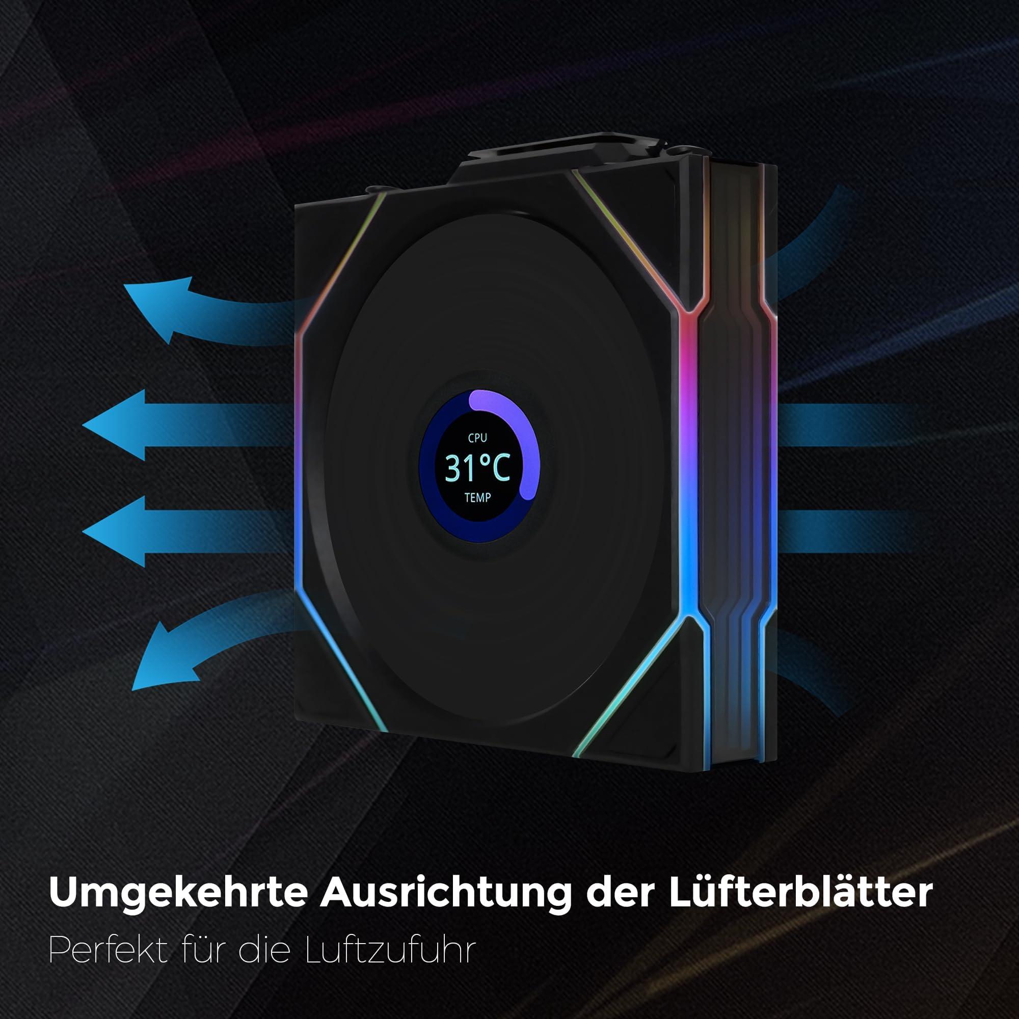 - VENTOLINE DI ALTA QUALITÀ DA 120 MM: Ventole PC nere durevoli con telaio in plastica PBT e PA66, che conferiscono al tuo setup RGB PC un aspetto moderno grazie al display LCD e allo specchio dell'infinito.'