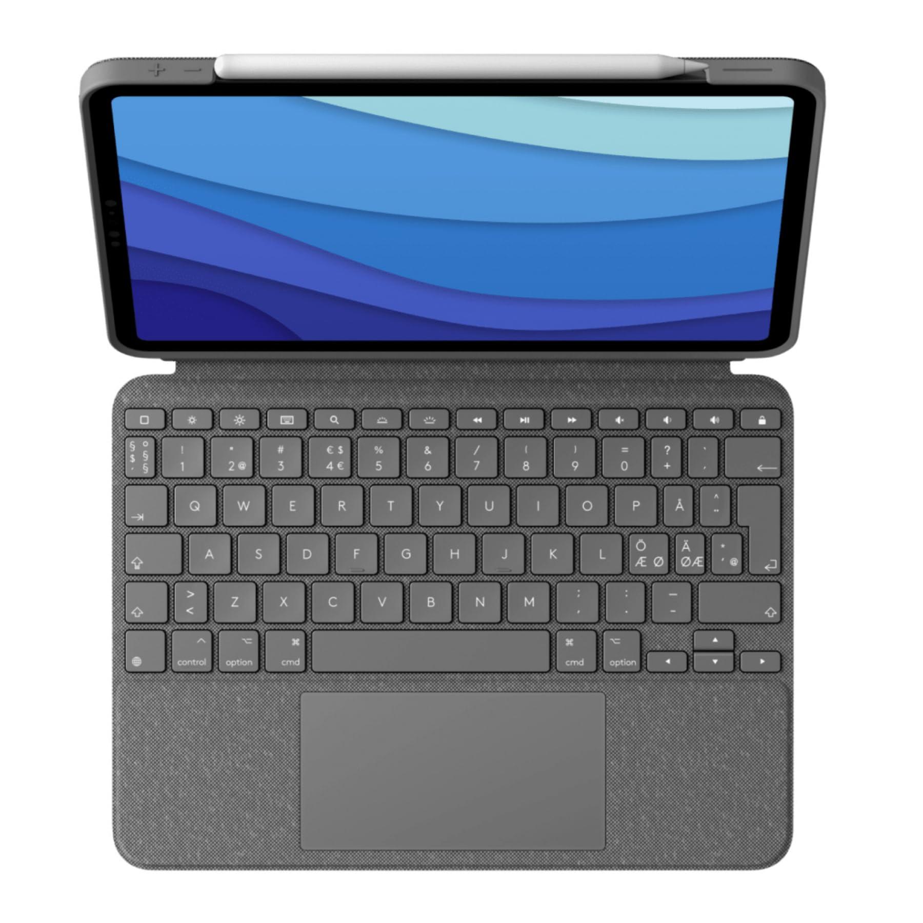 Logitech Combo Touch iPad Pro 11" (1a, 2a, 3a e 4a generazione - 2018, 2020, 2021, 2022) Custodia per tastiera e pastello a penna digitale (2018 e versioni successive), Pan Nordic QWERTY, grigio