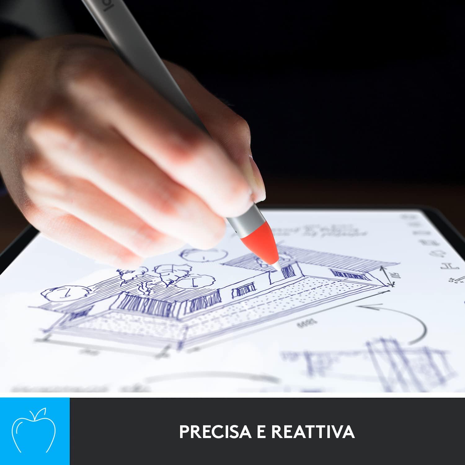 Logitech Crayon Digital Pencil for Education, matita digitale per tutti gli iPad (versioni 2018 e successive) con tecnologia Apple Pencil, design anti-rotolamento e punta intelligente dinamica